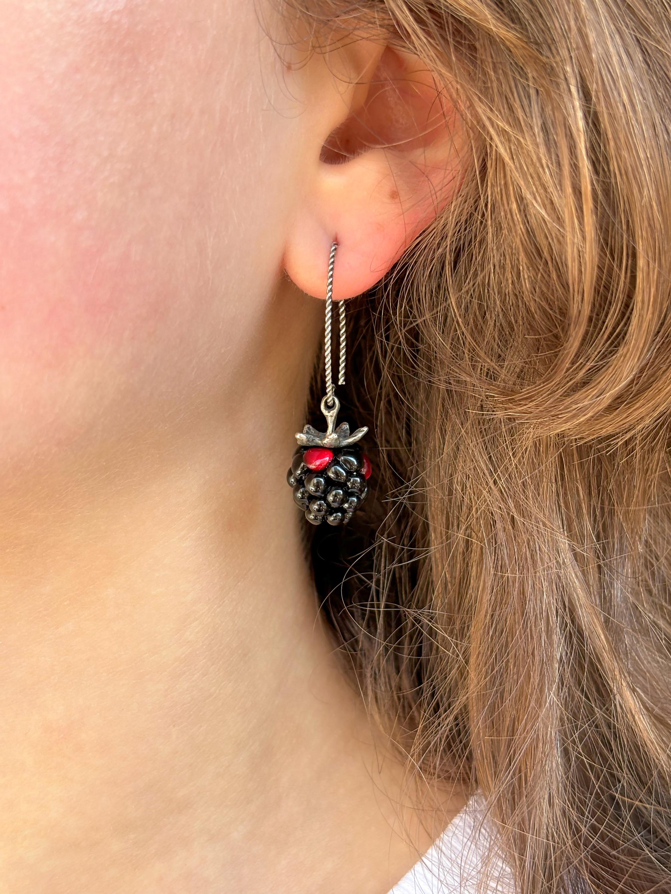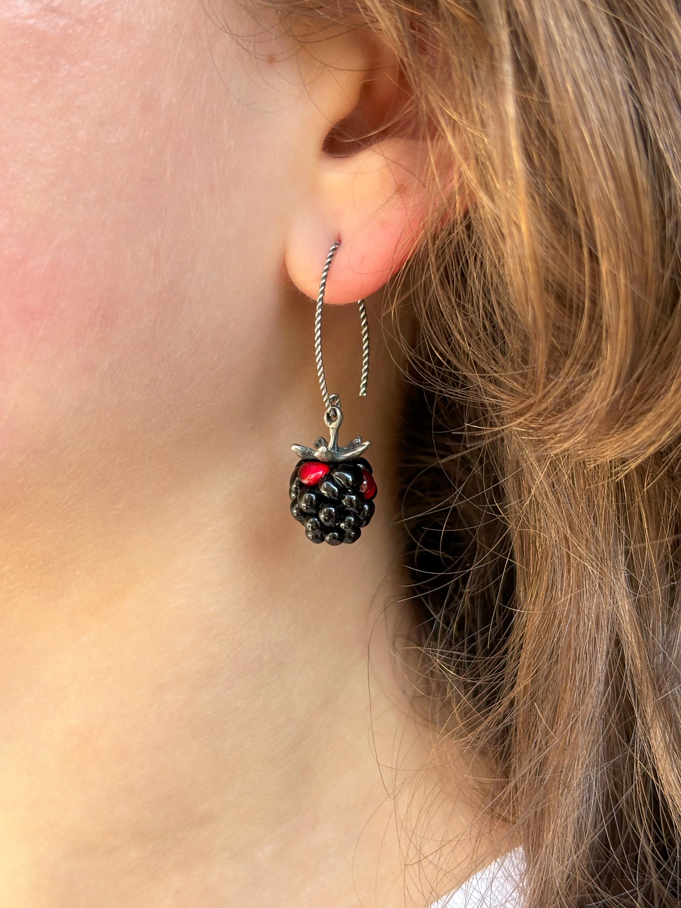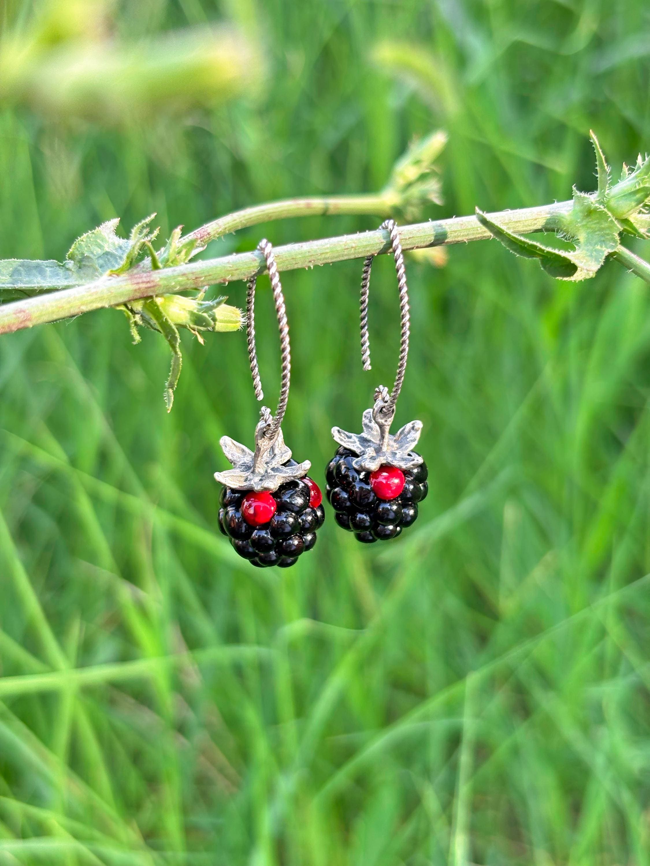 Blackberry Earrings, Glass Berries, Handmade, Murano Glass, 925 Sterling Silver, Lampwork