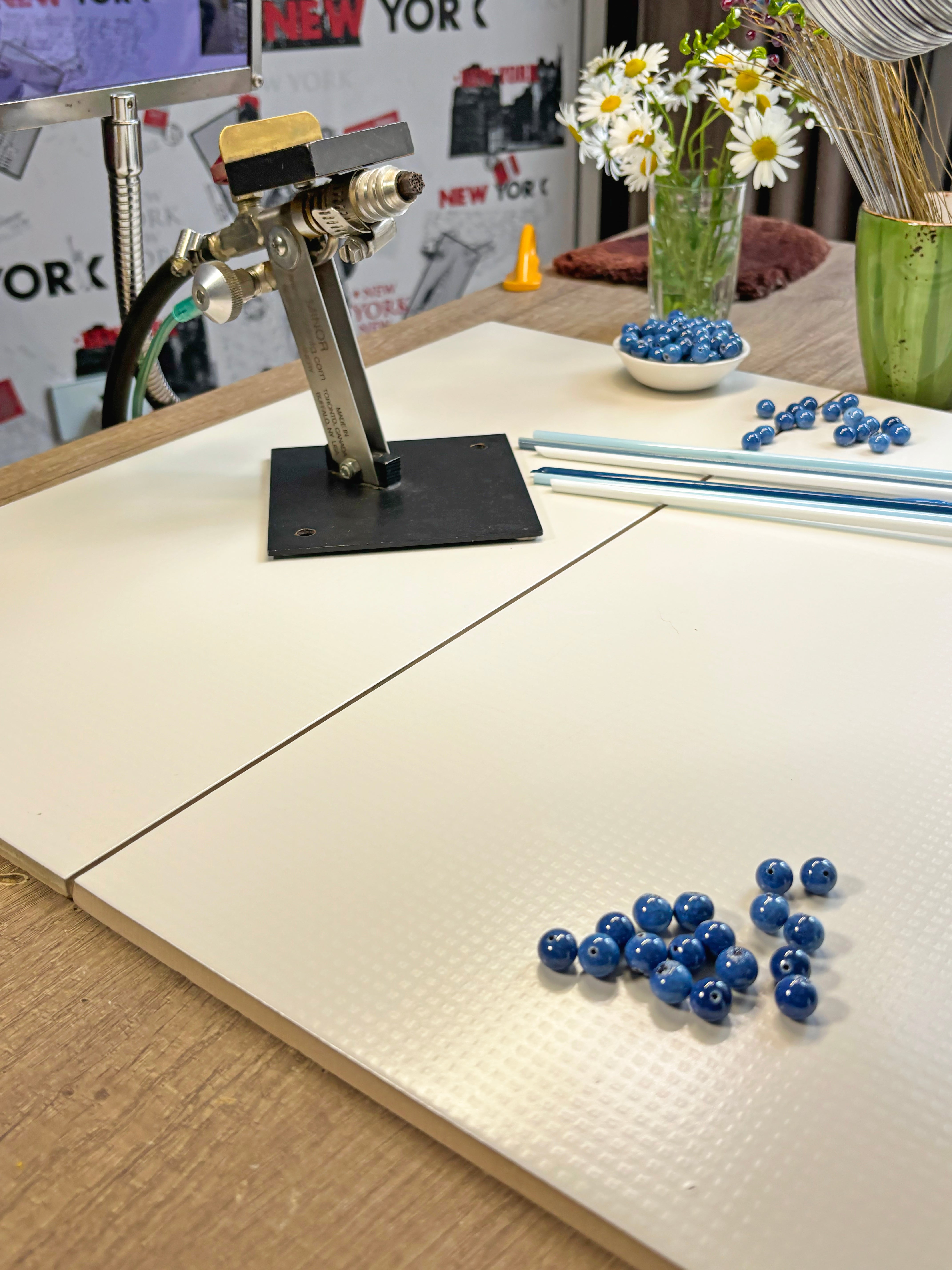 Each blueberry and tiny leaf is individually flame-sculpted from Murano and Bohemian glass using the traditional lampwork technique. Every detail is shaped by hand in a 1000°C flame, then slowly annealed in a kiln to ensure strength and longevity.