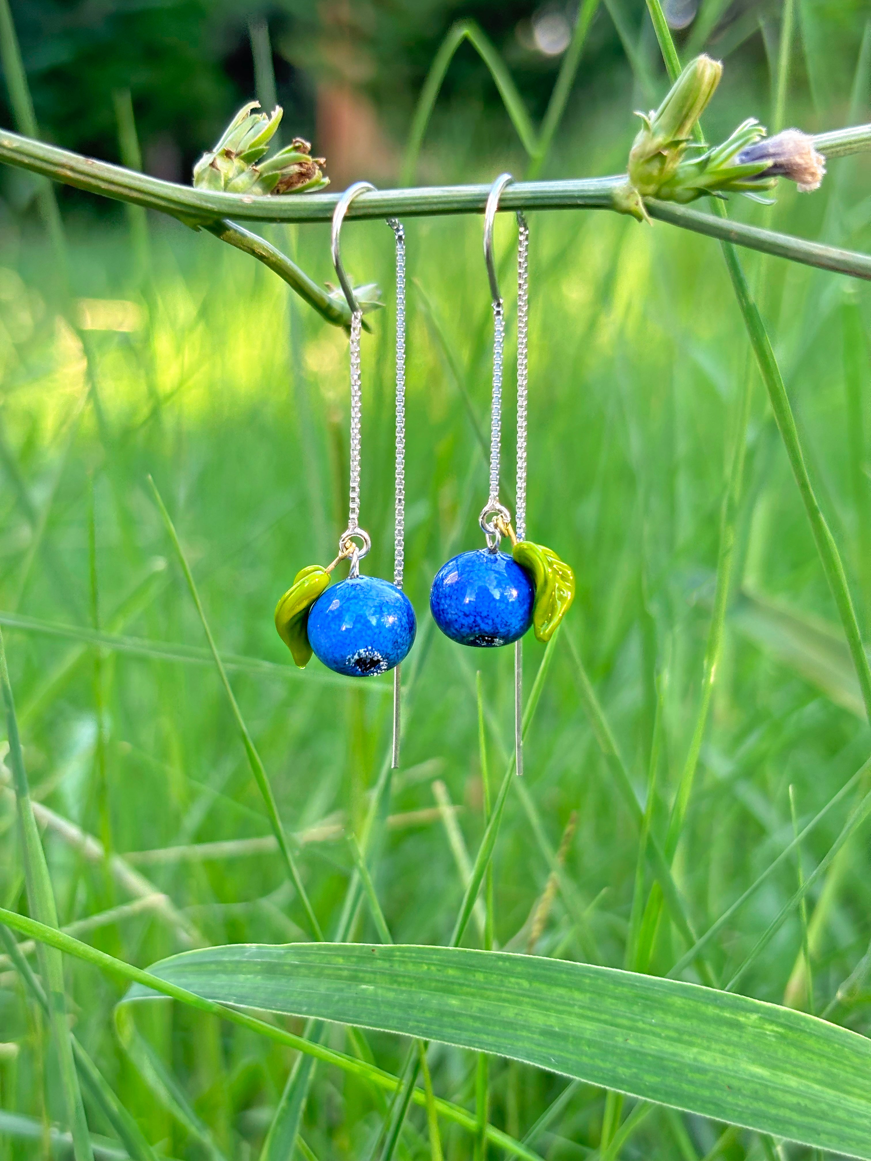 Introducing Our Lucky Blueberry Leaf Dangle Earrings! 🫐🍃✨
