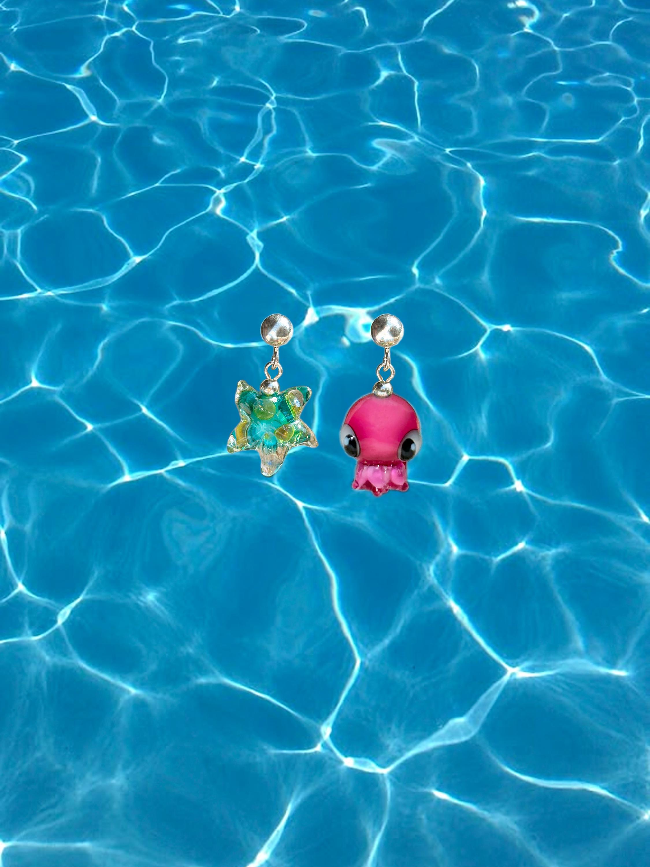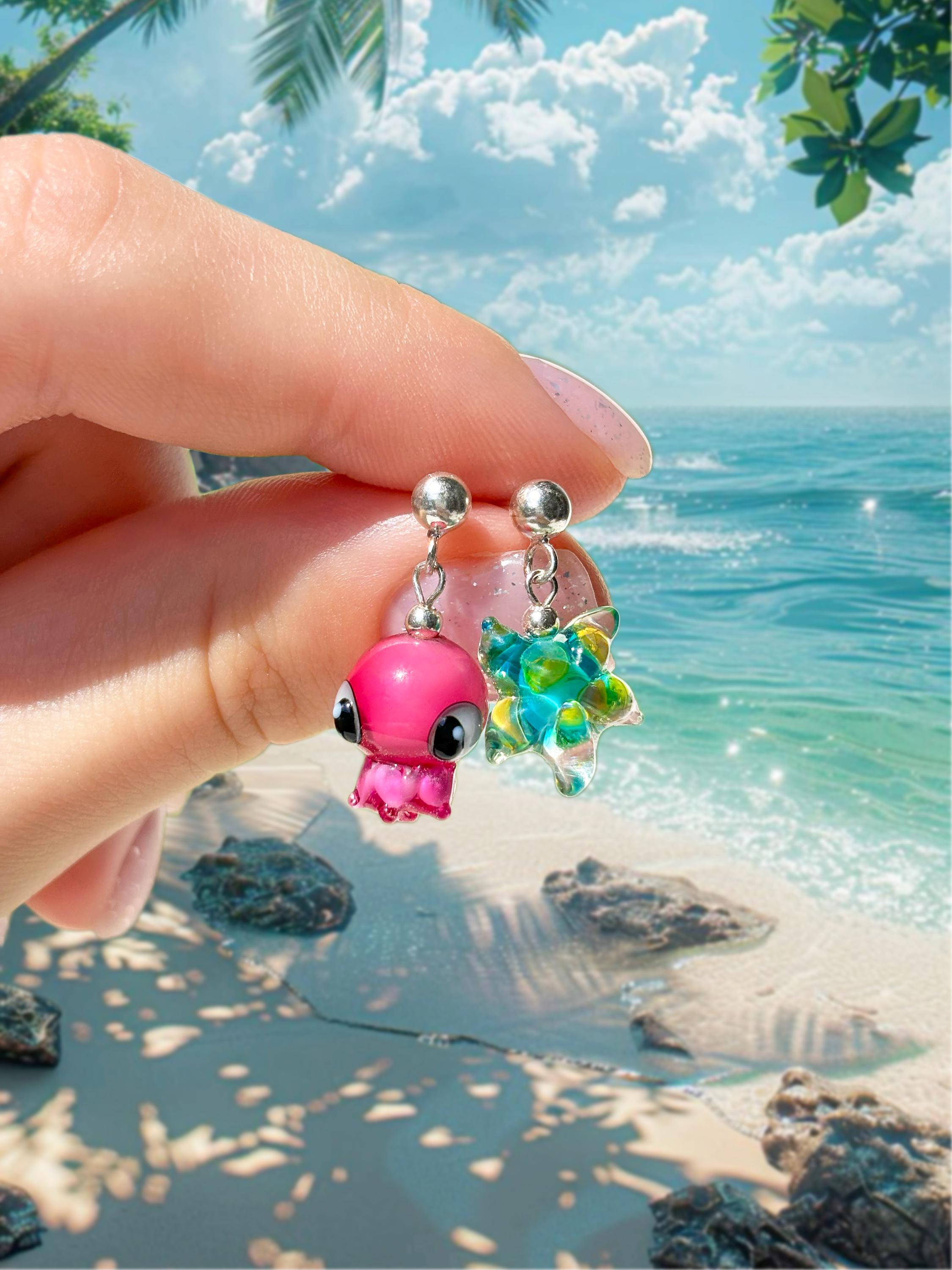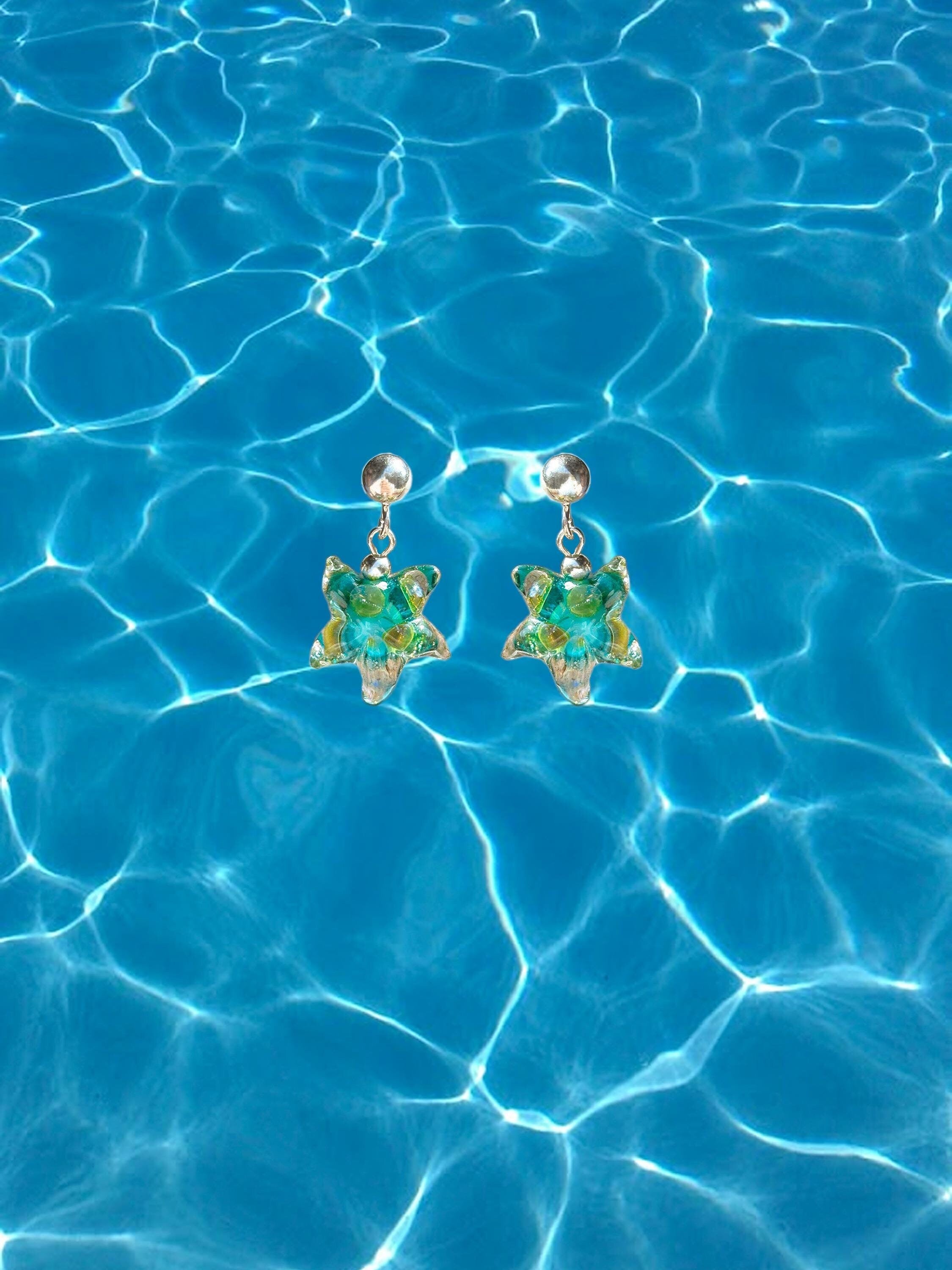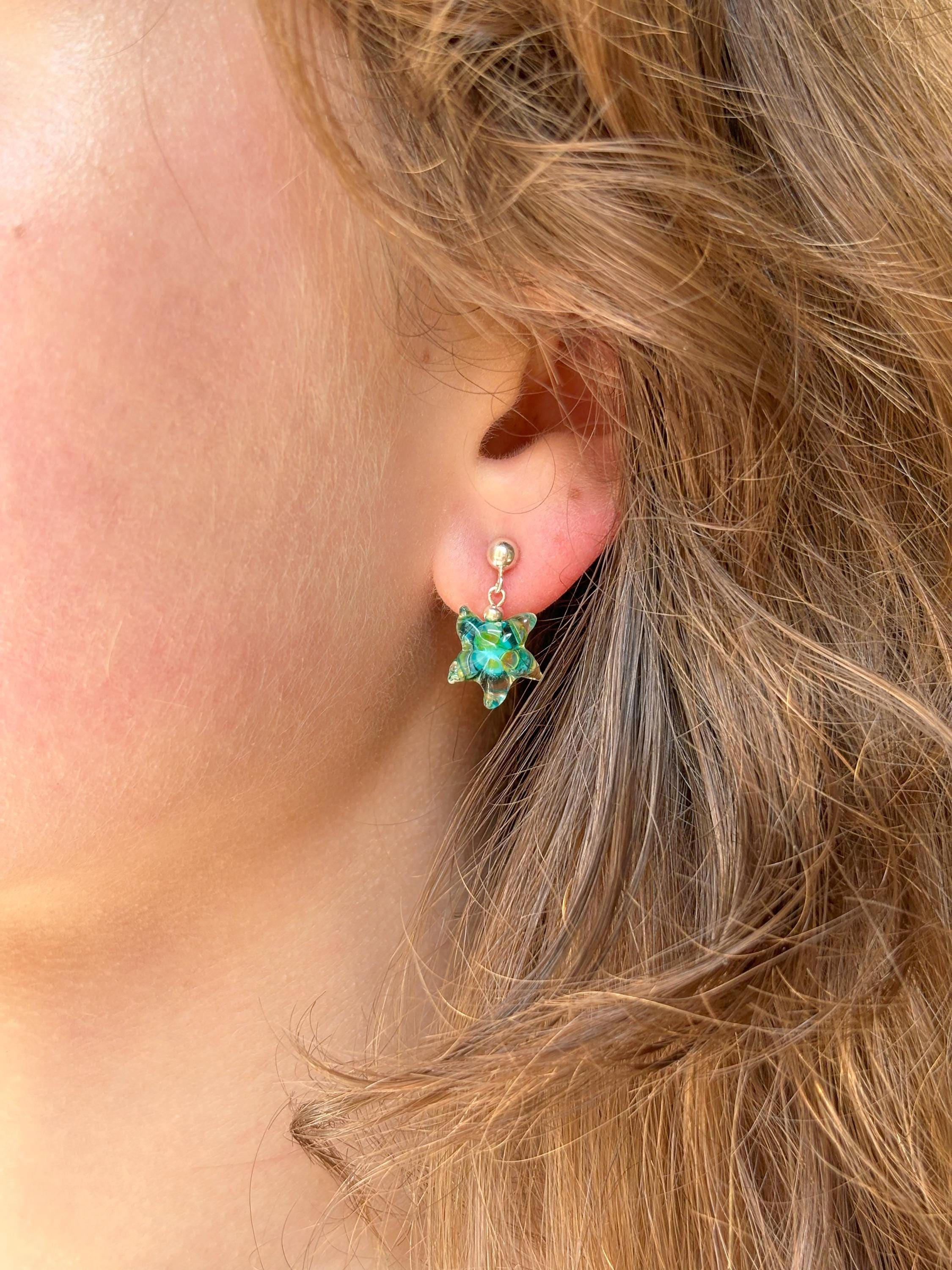 Lucky Starfish Earrings, Handcrafted, Murano Glass, 925 Sterling Silver, Lampwork