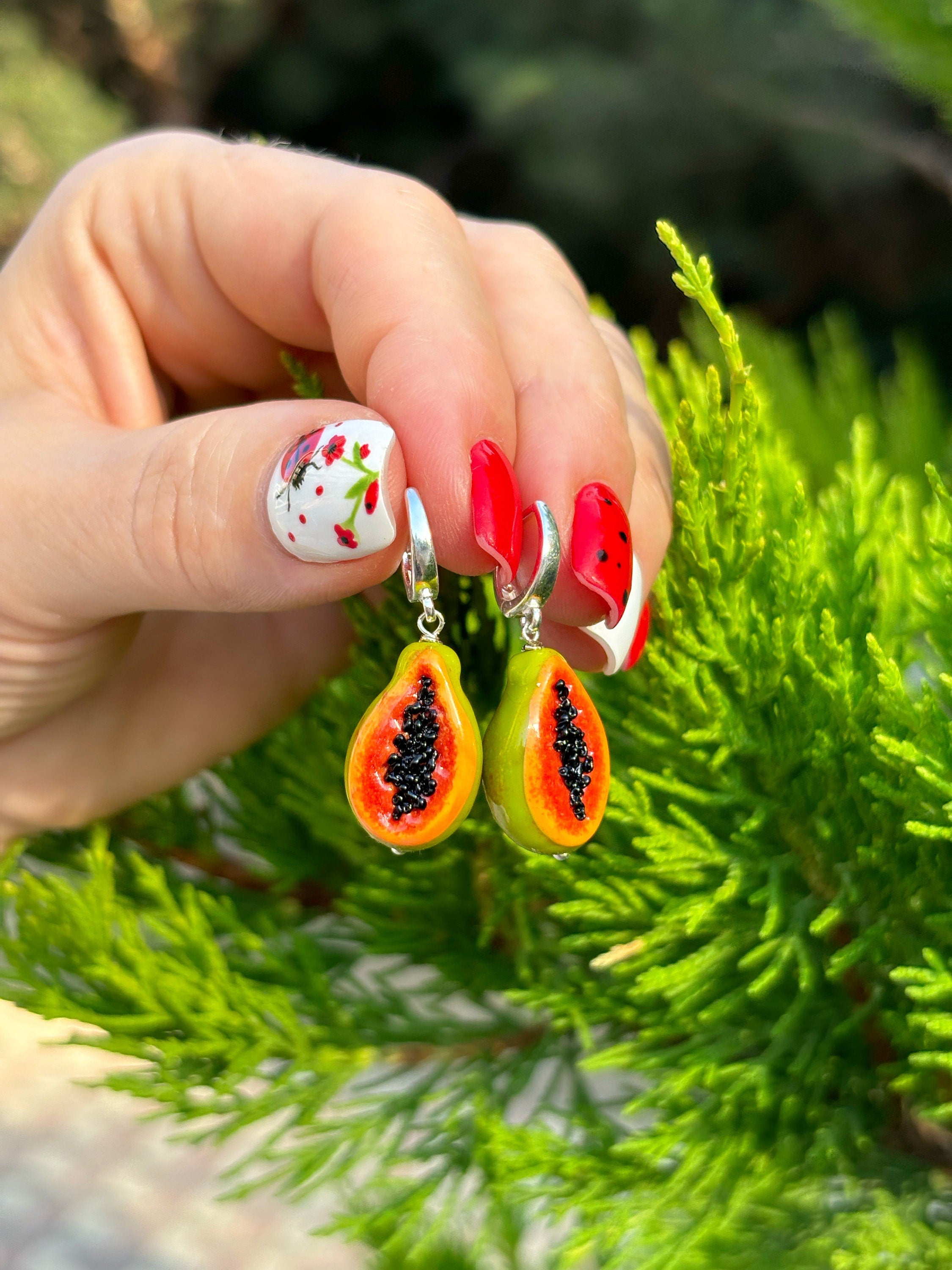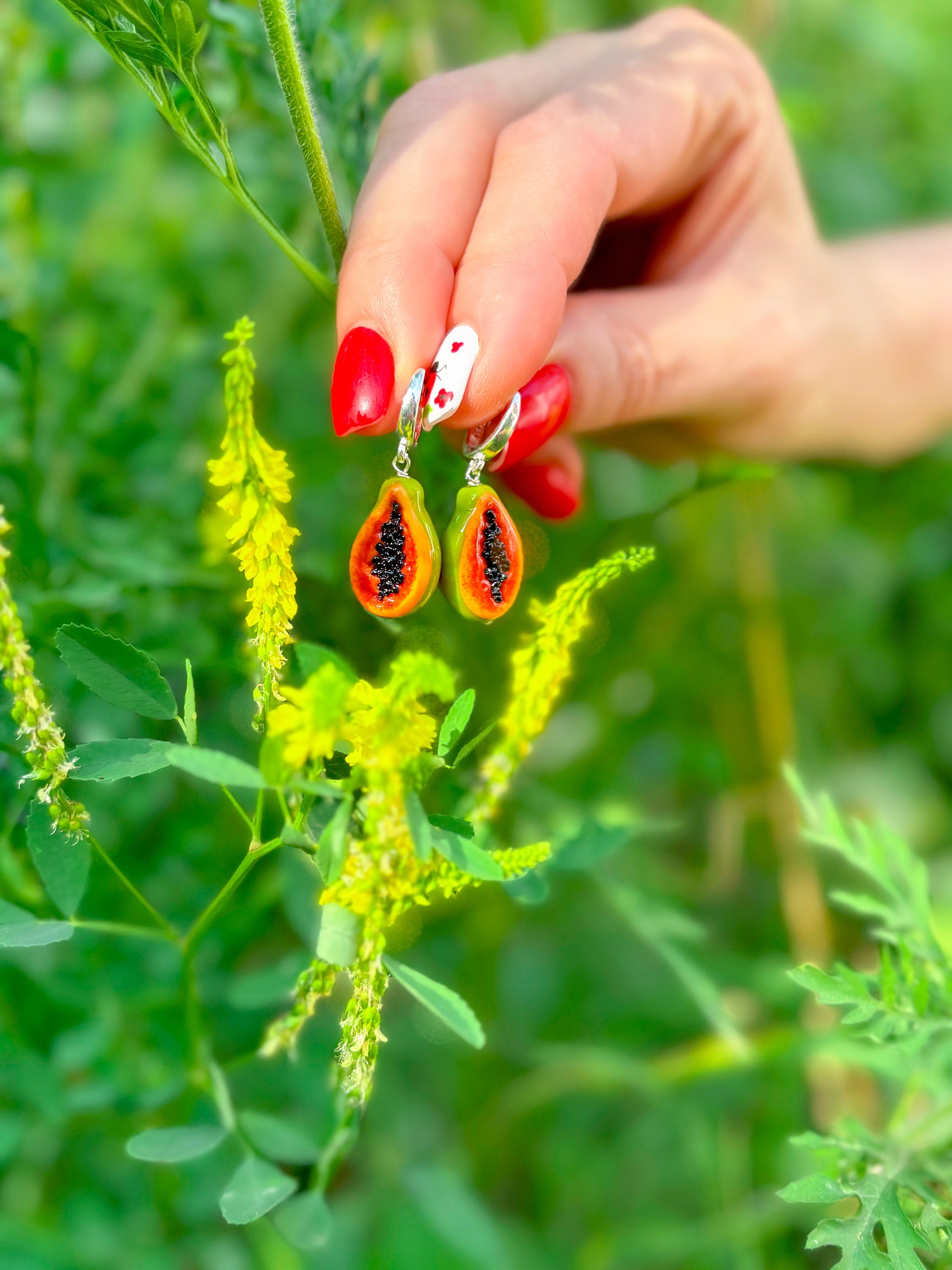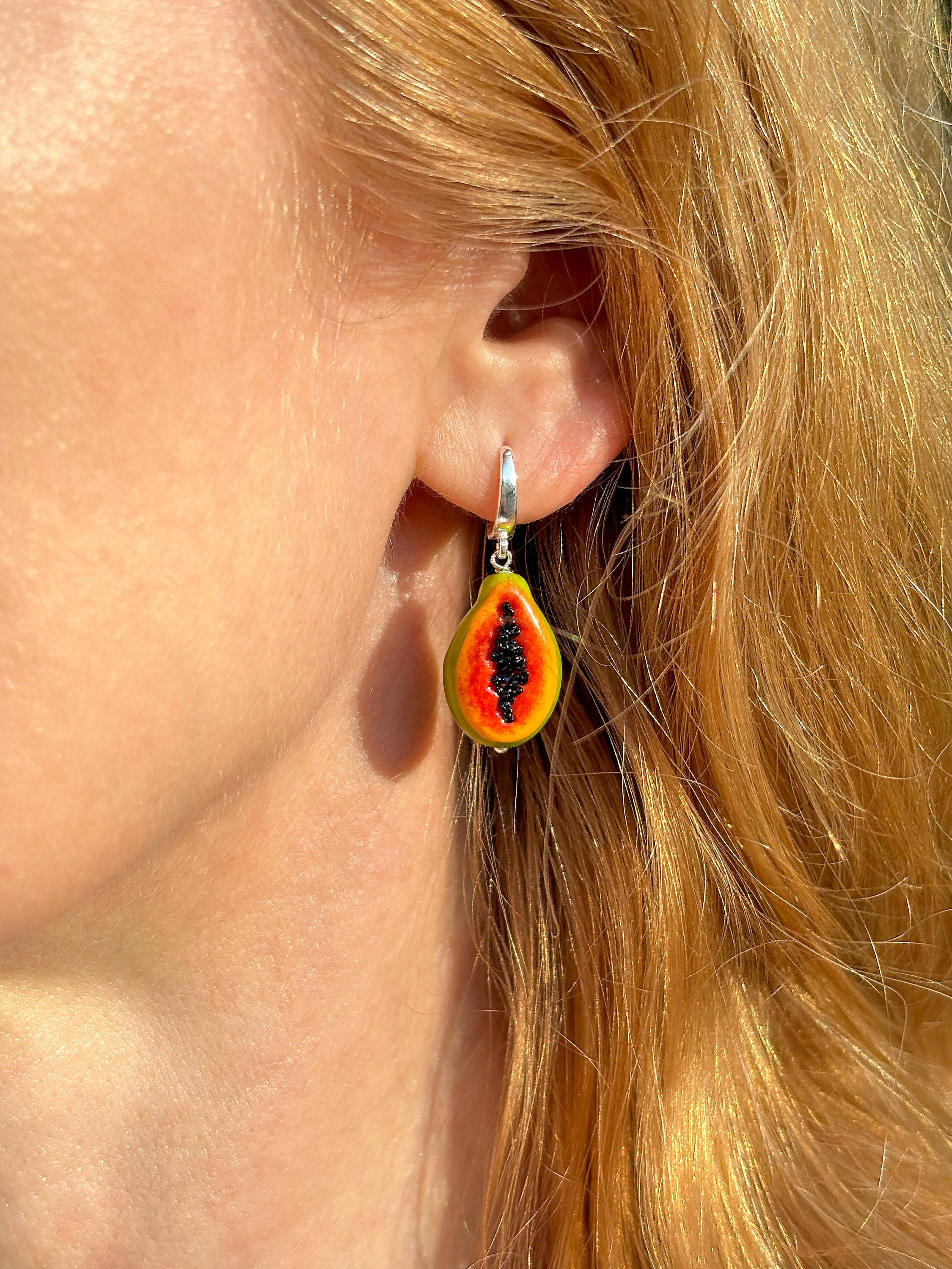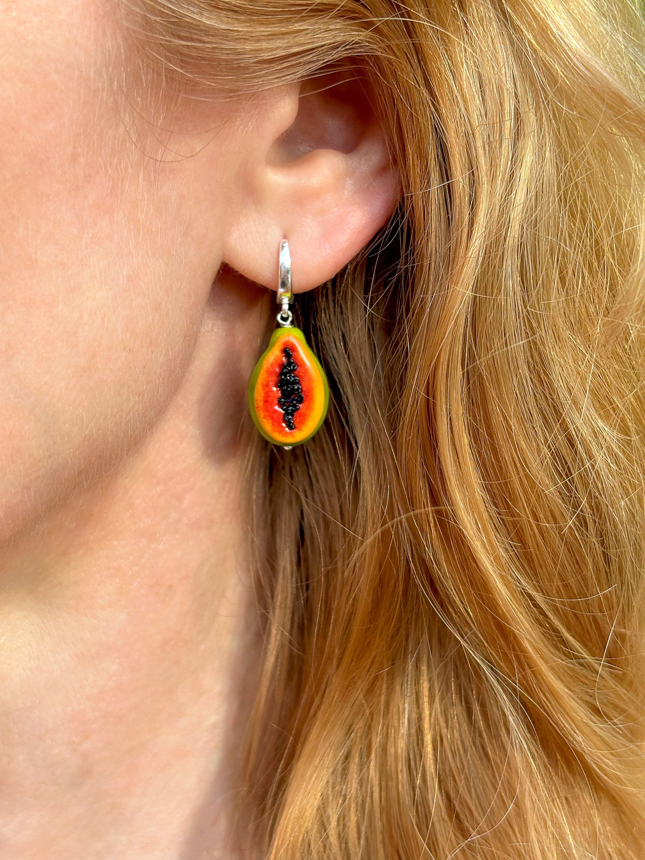 Papaya Earrings, Fruit Earrings, Murano Glass, Sterling SIlver, Lampwork