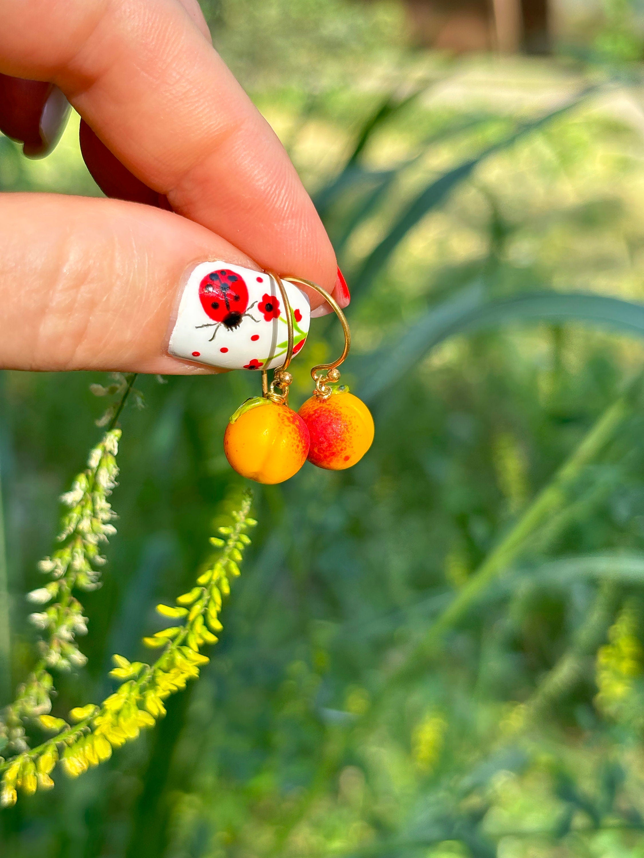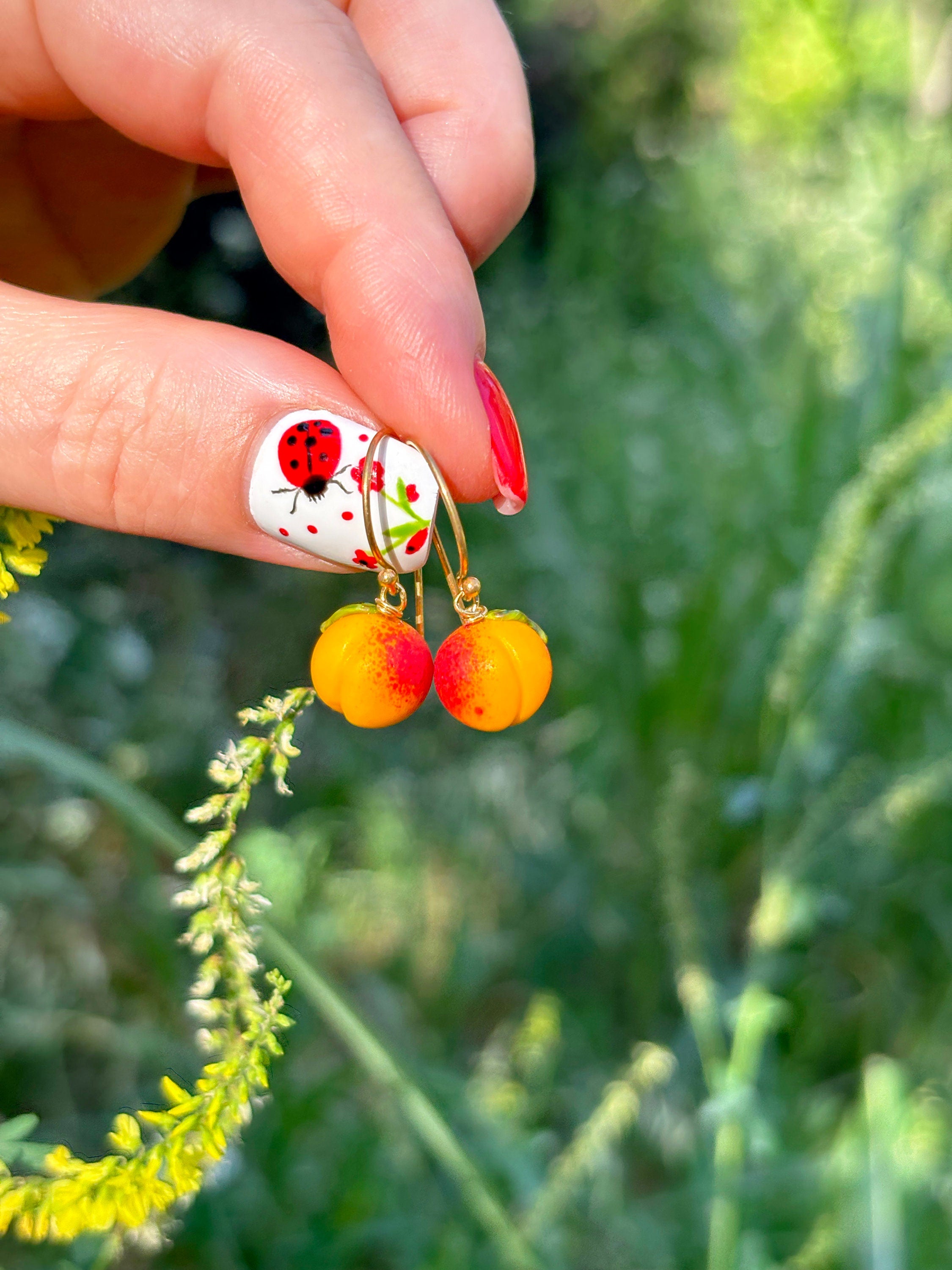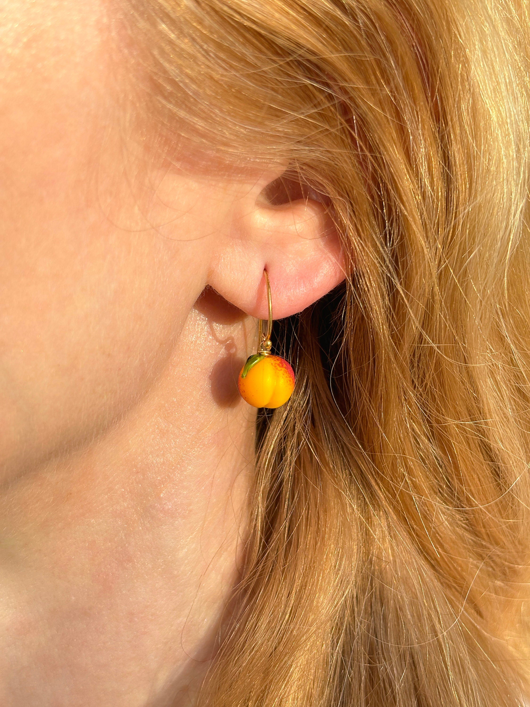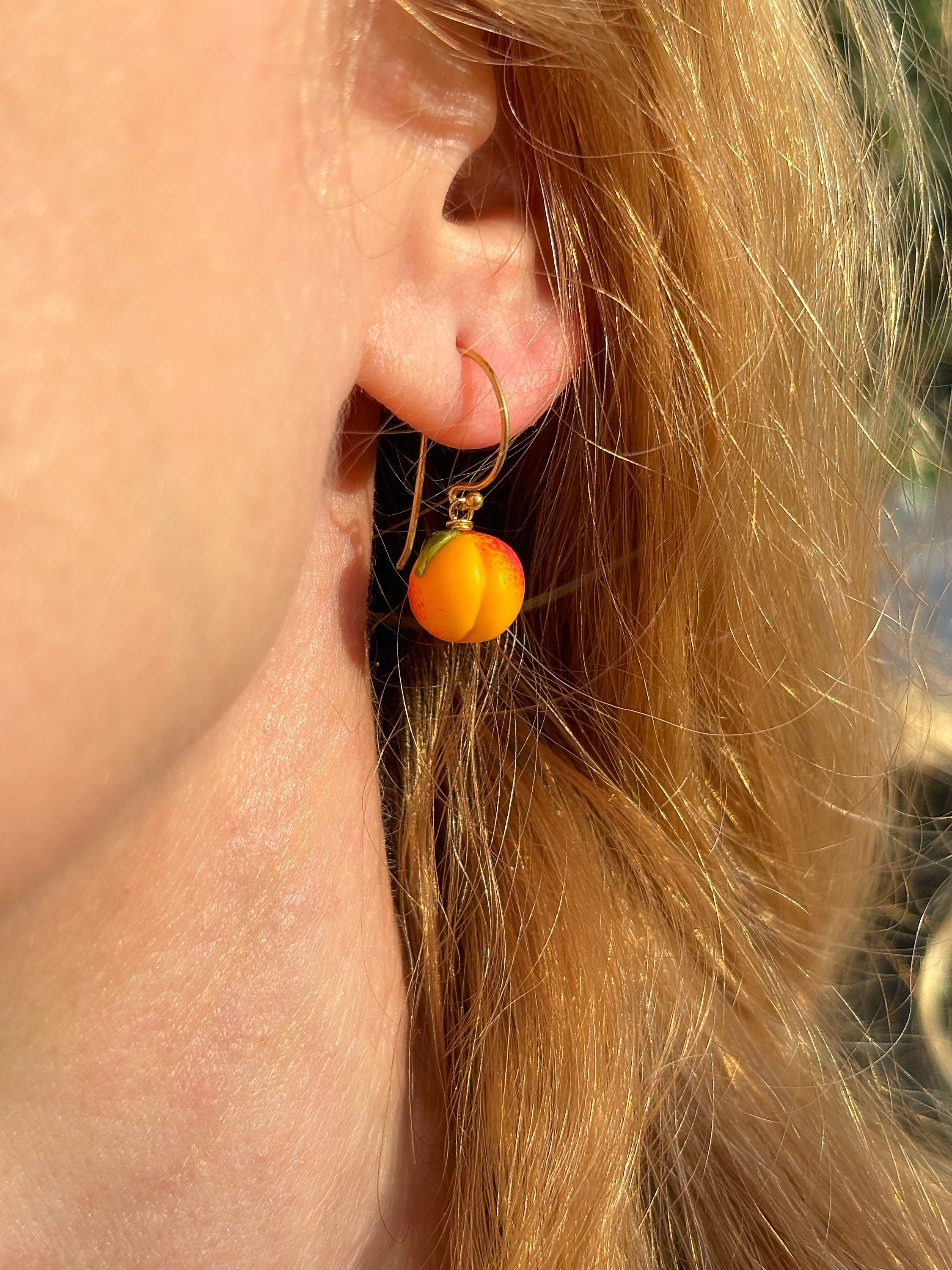 Peach Earrings, Fruit Earrings, Murano Glass, Sterling SIlver, Gold Plated, Lampwork