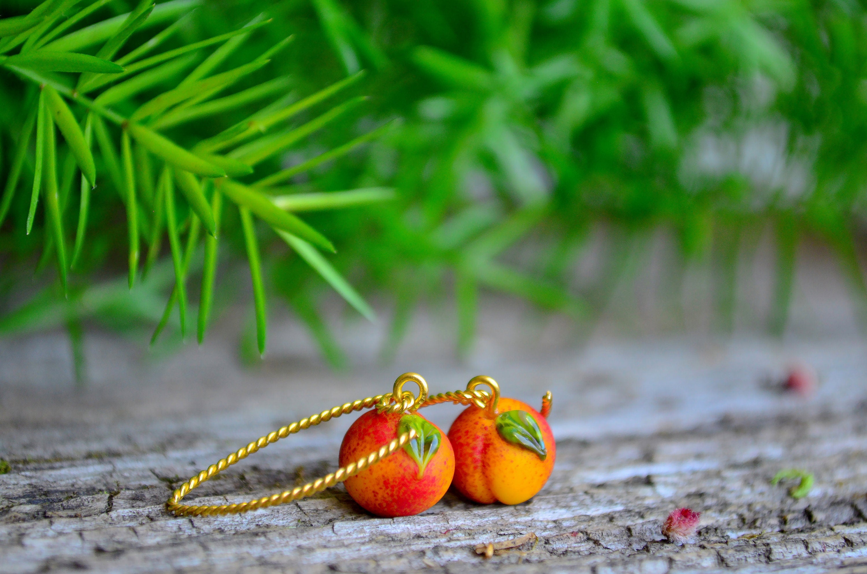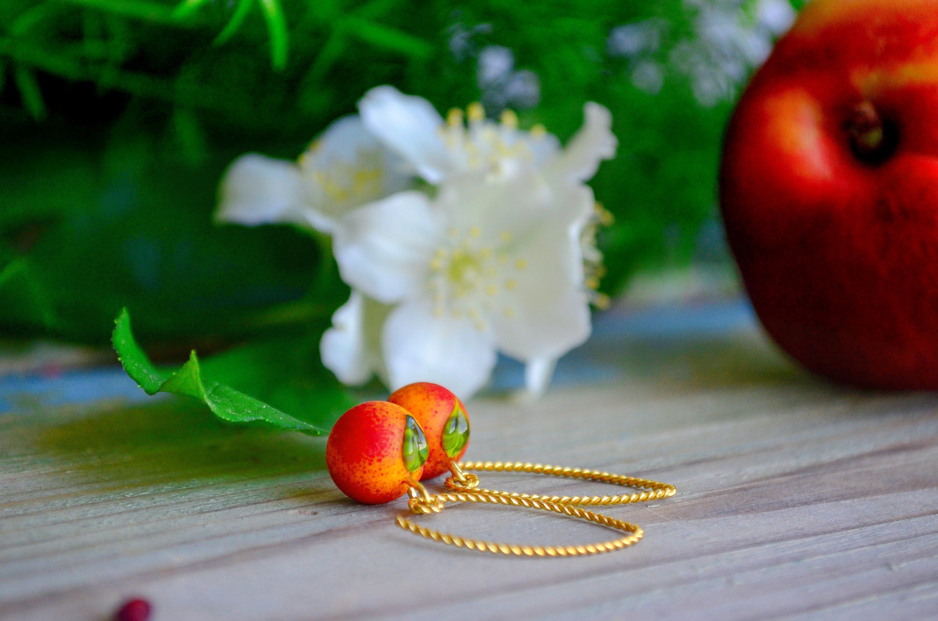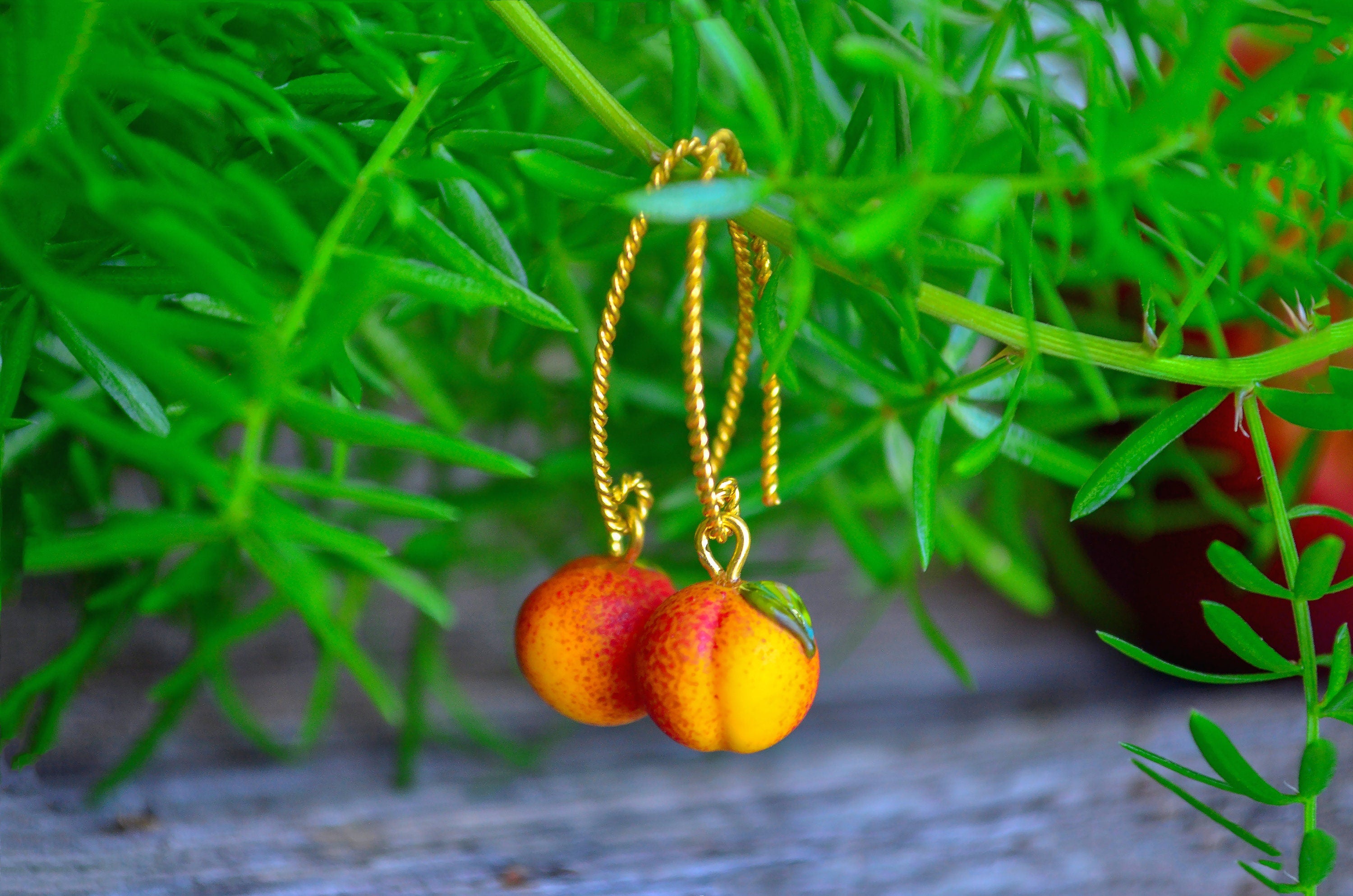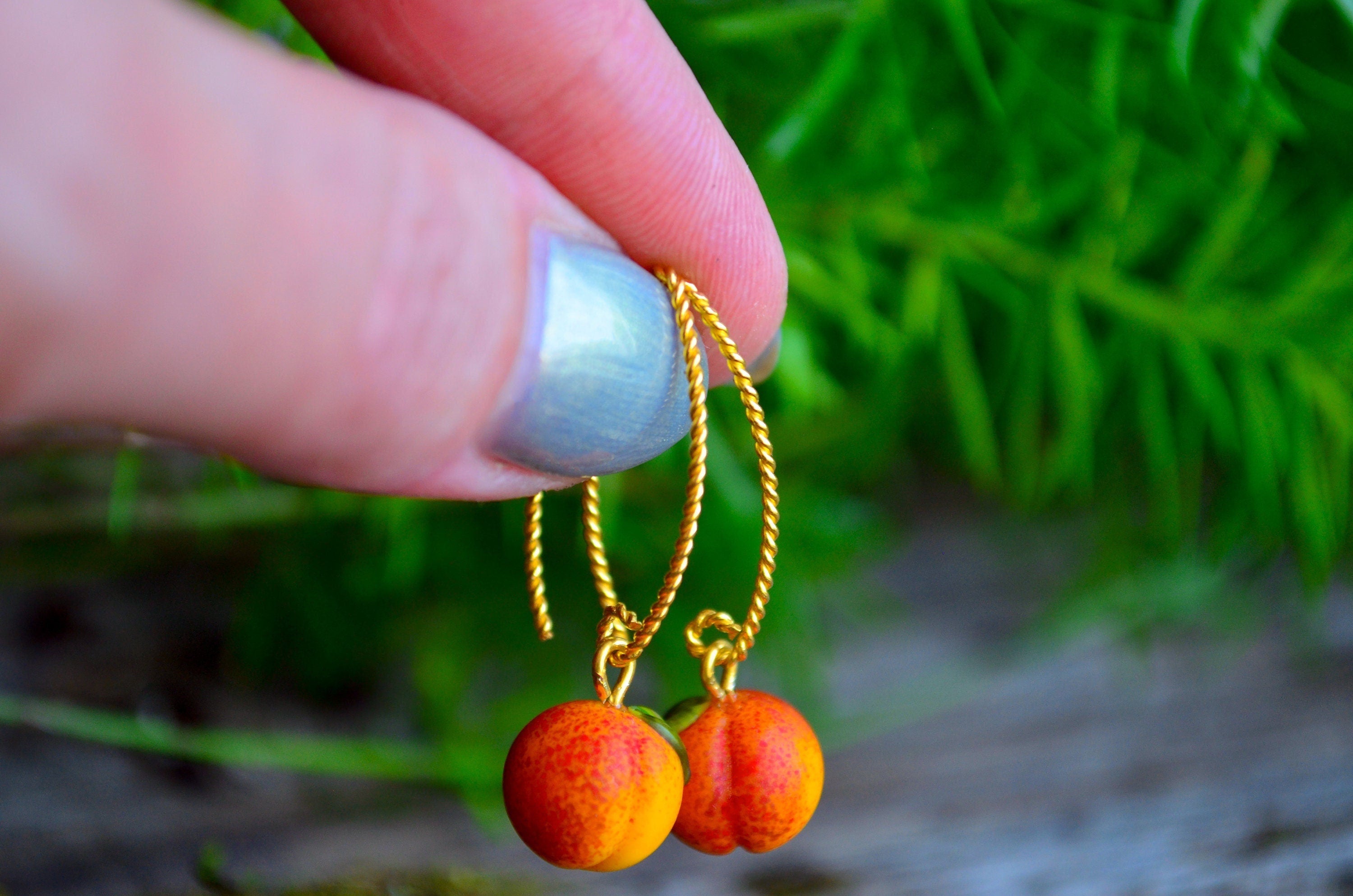 Peach Earrings, Gold Plated, Fruit Earrings, Botanical Earrings, Earrings For Women, Valentine's Day Gift, Mother Gifts, Gift For Her