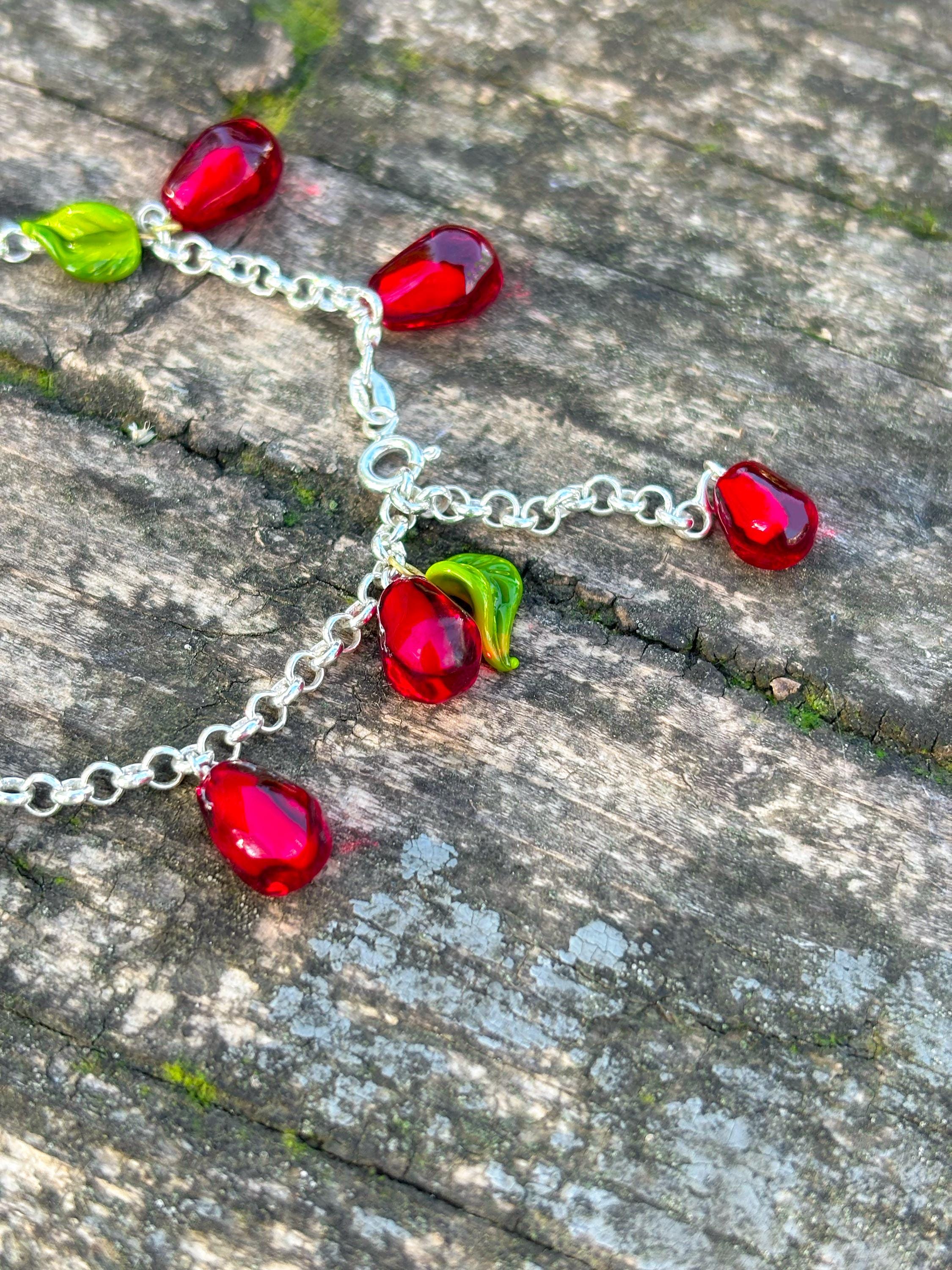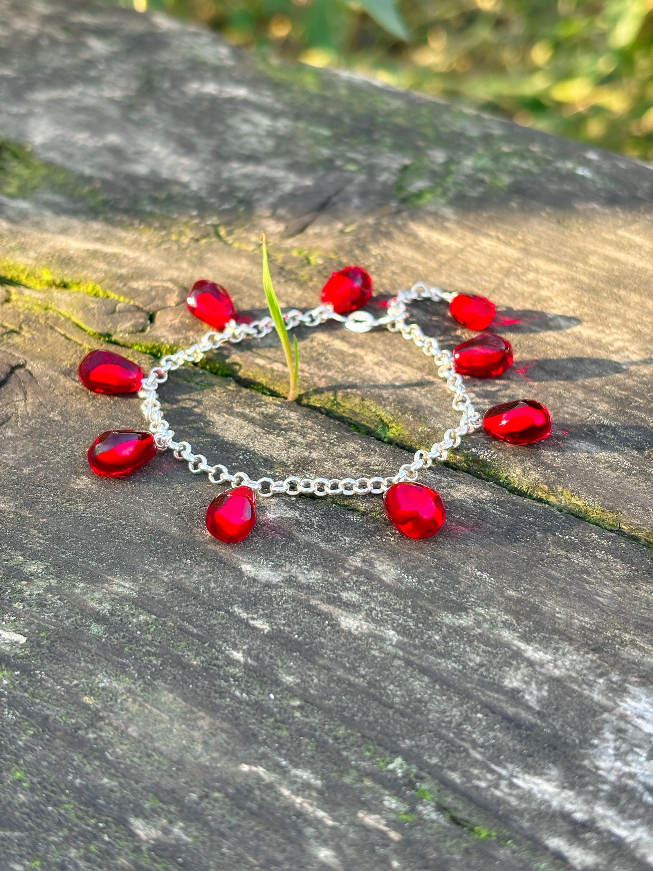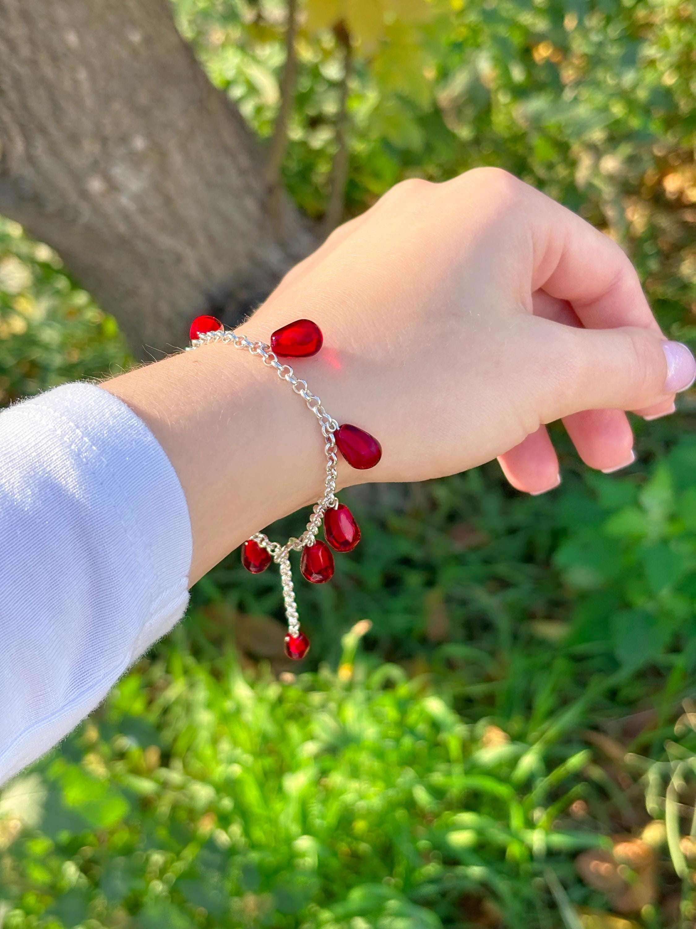 Pomegranate Seed Bracelet, 925 Sterling Silver, Murano Glass, Handcrafted, Lampwork