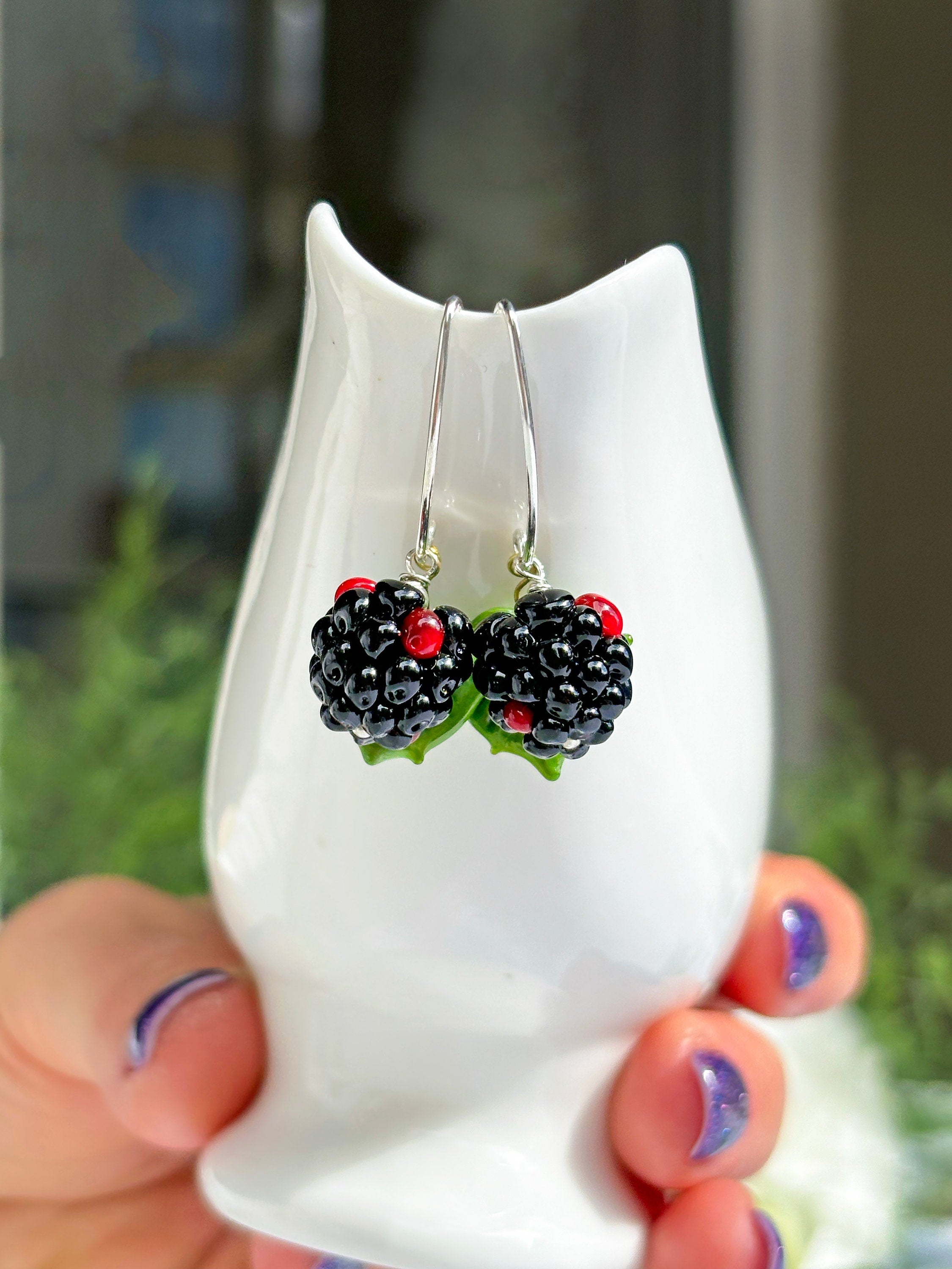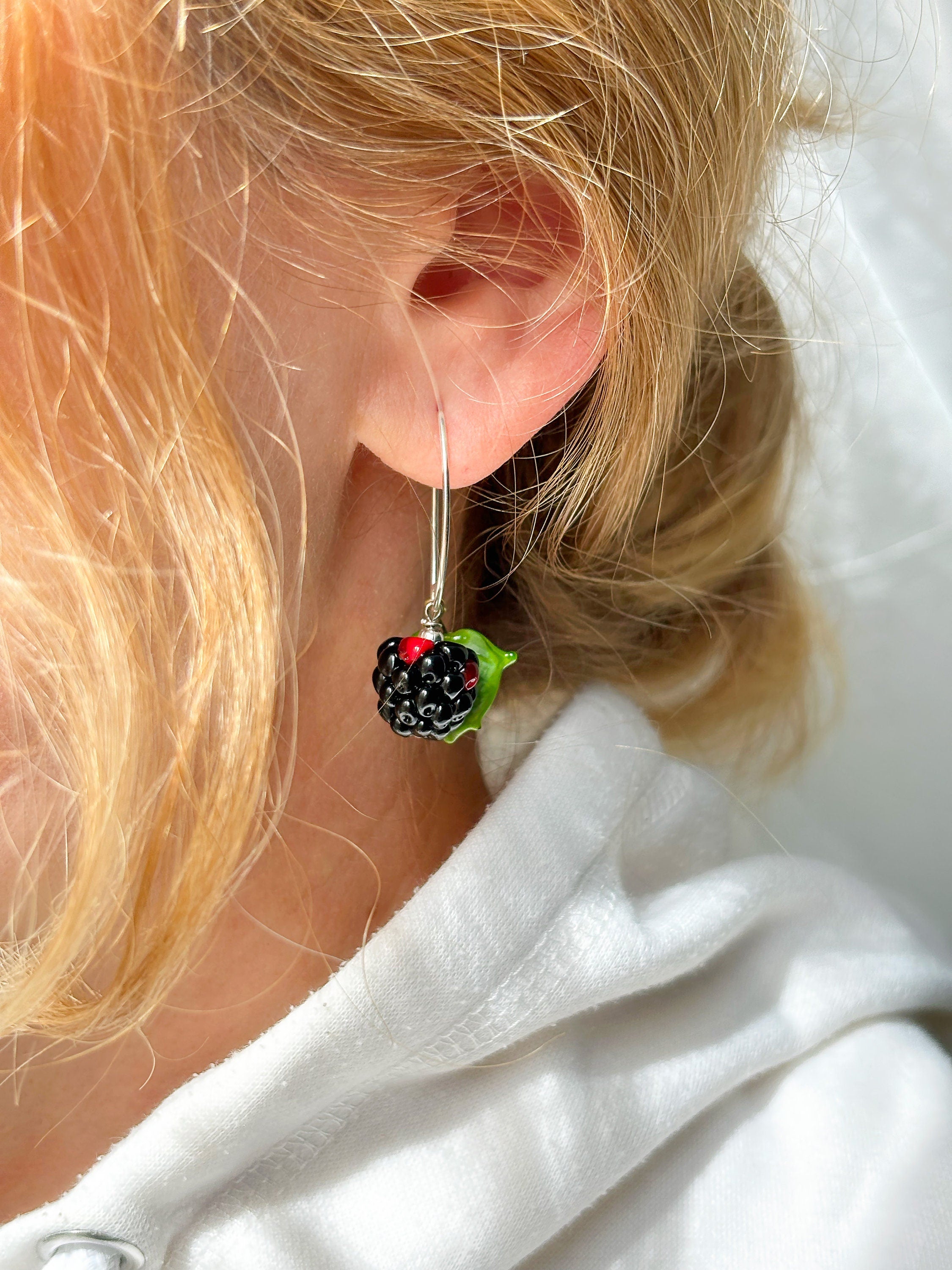 Summer Berries Earrings, Blackberry Earrings, Sterling Silver, Murano Glass