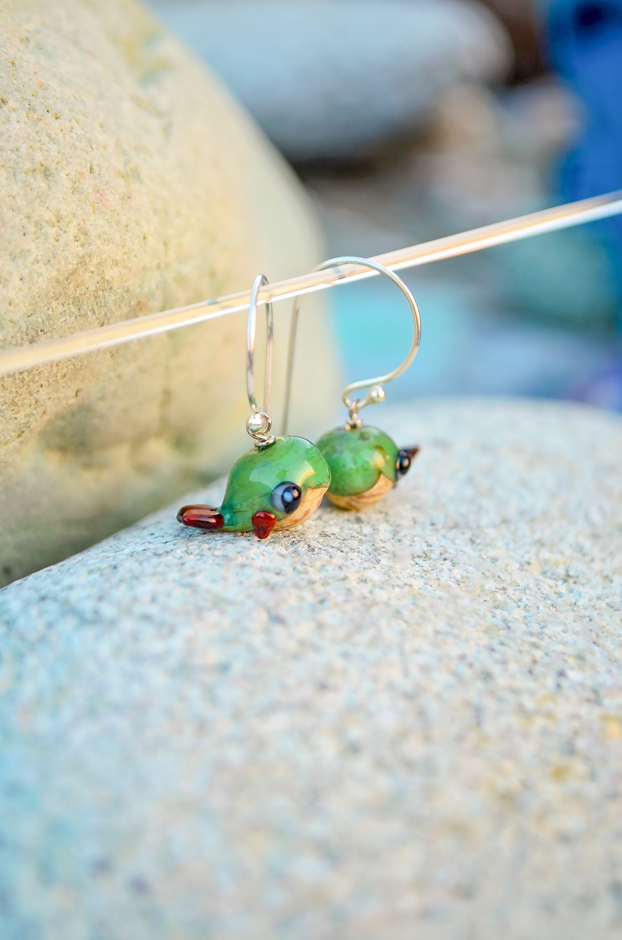 Silver ear hooks, high-quality glass: Italian, Czech, American, and German.