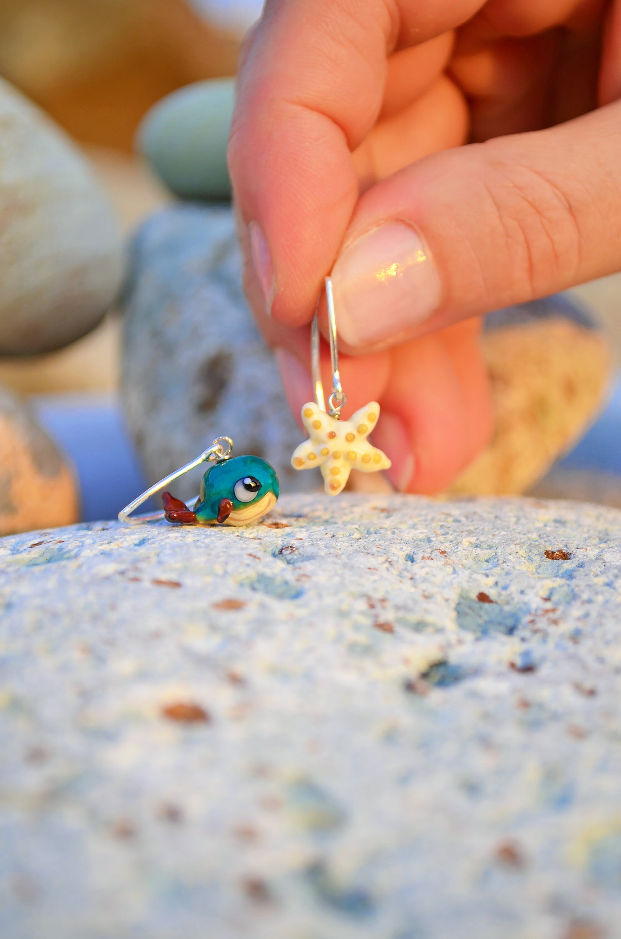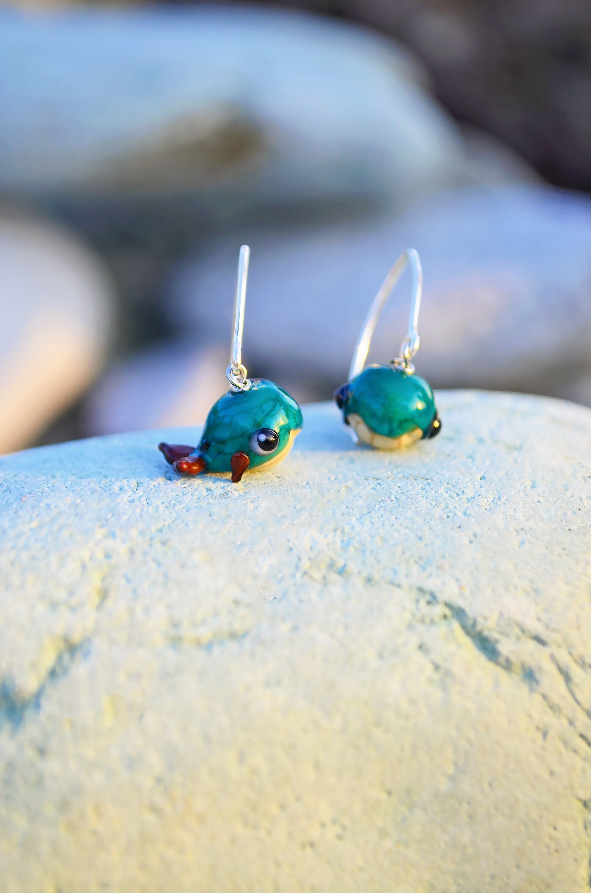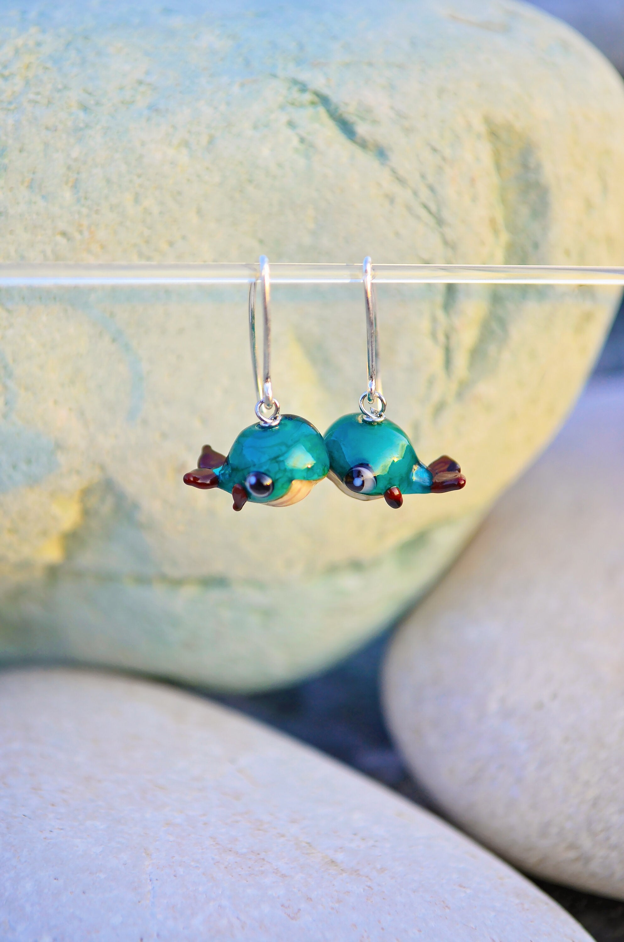 Whale Earrings, Sea Creature, Glass Earrings, Gift For Her