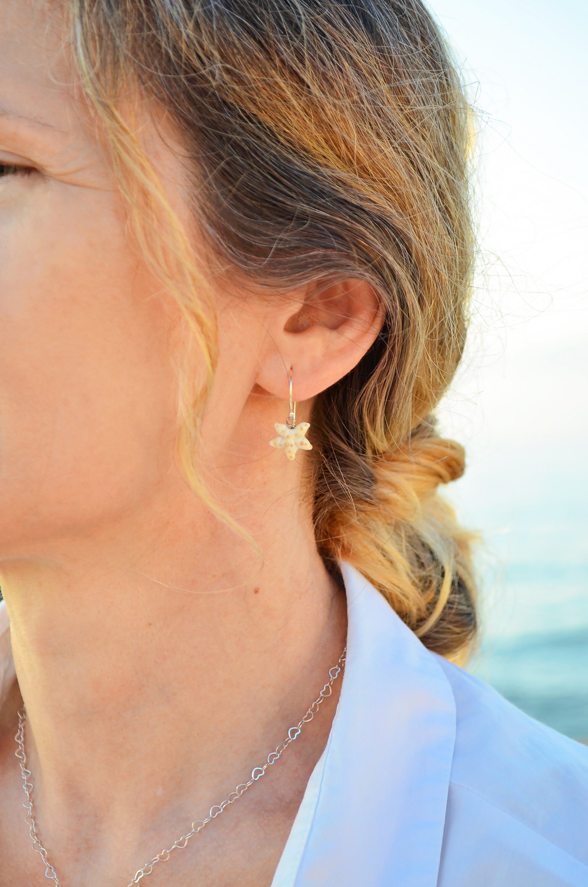 Silver ear hooks, high-quality glass: Italian, Czech, American, and German.