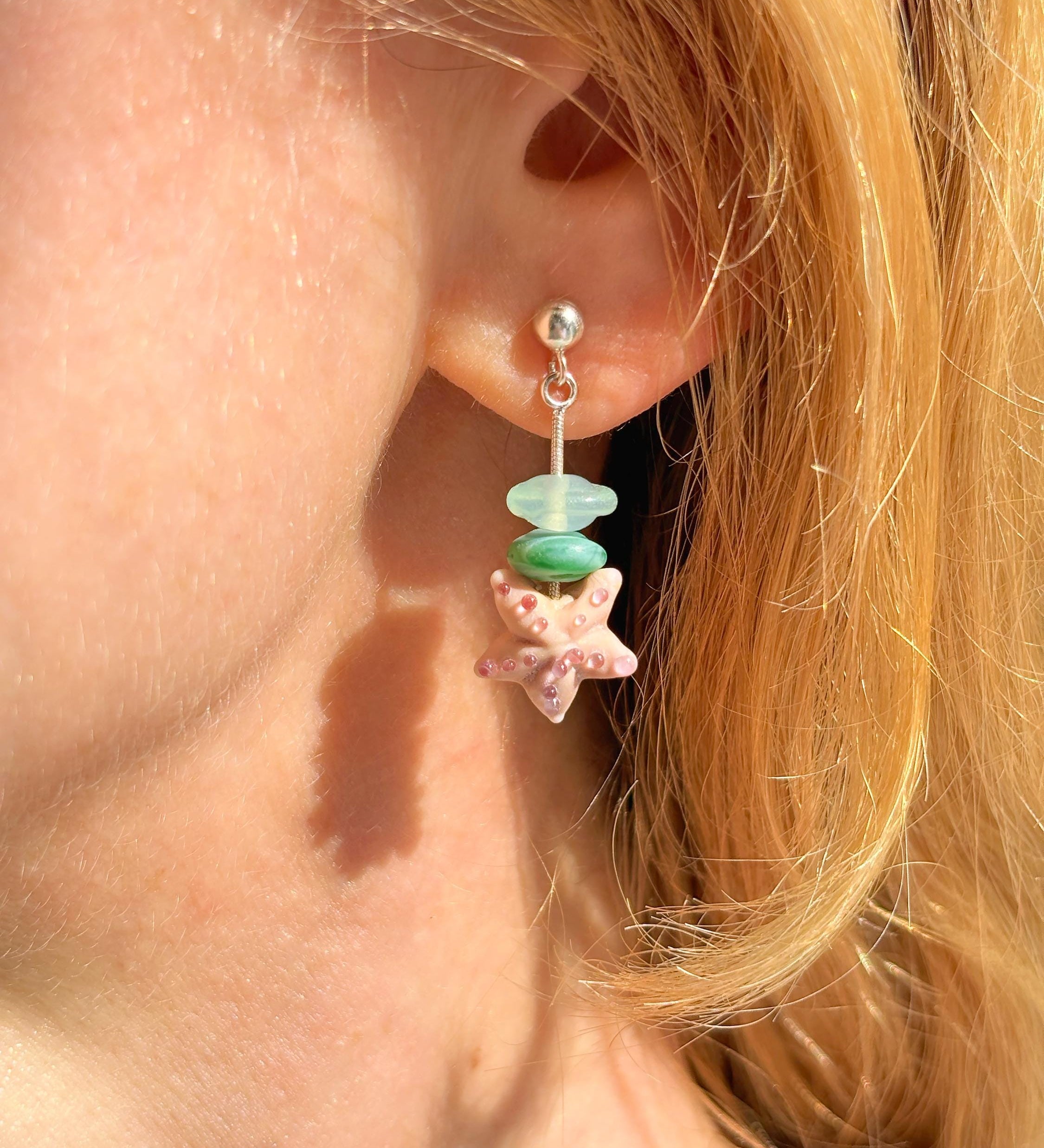 Strarfish Earrings, Ocean-Inspired Jewelry, Unique Sea Star, Art Glass, 925 Sterling Silver, Lampwork