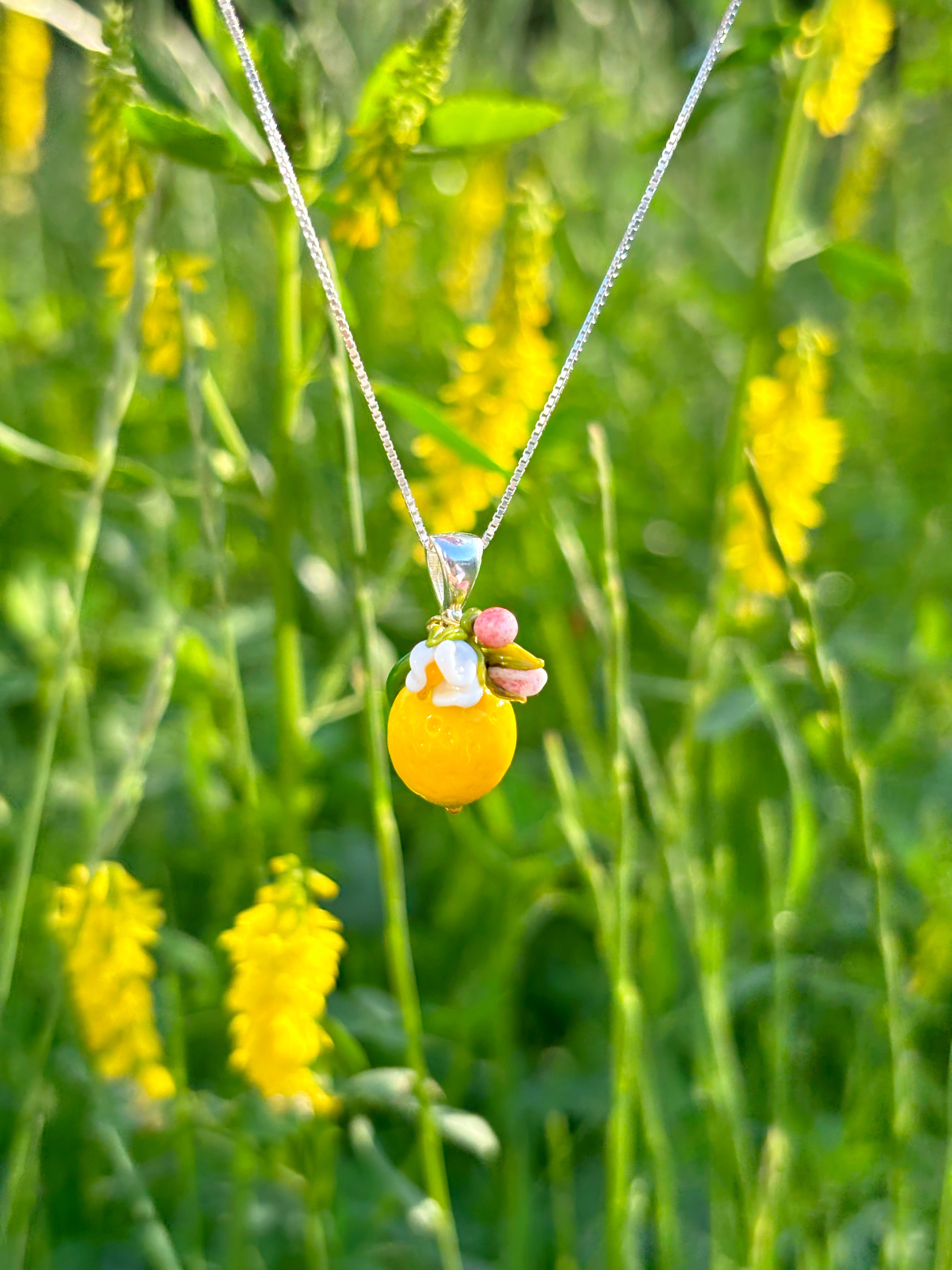 Discover this summer, nature-inspired lemon necklace with flower🍋