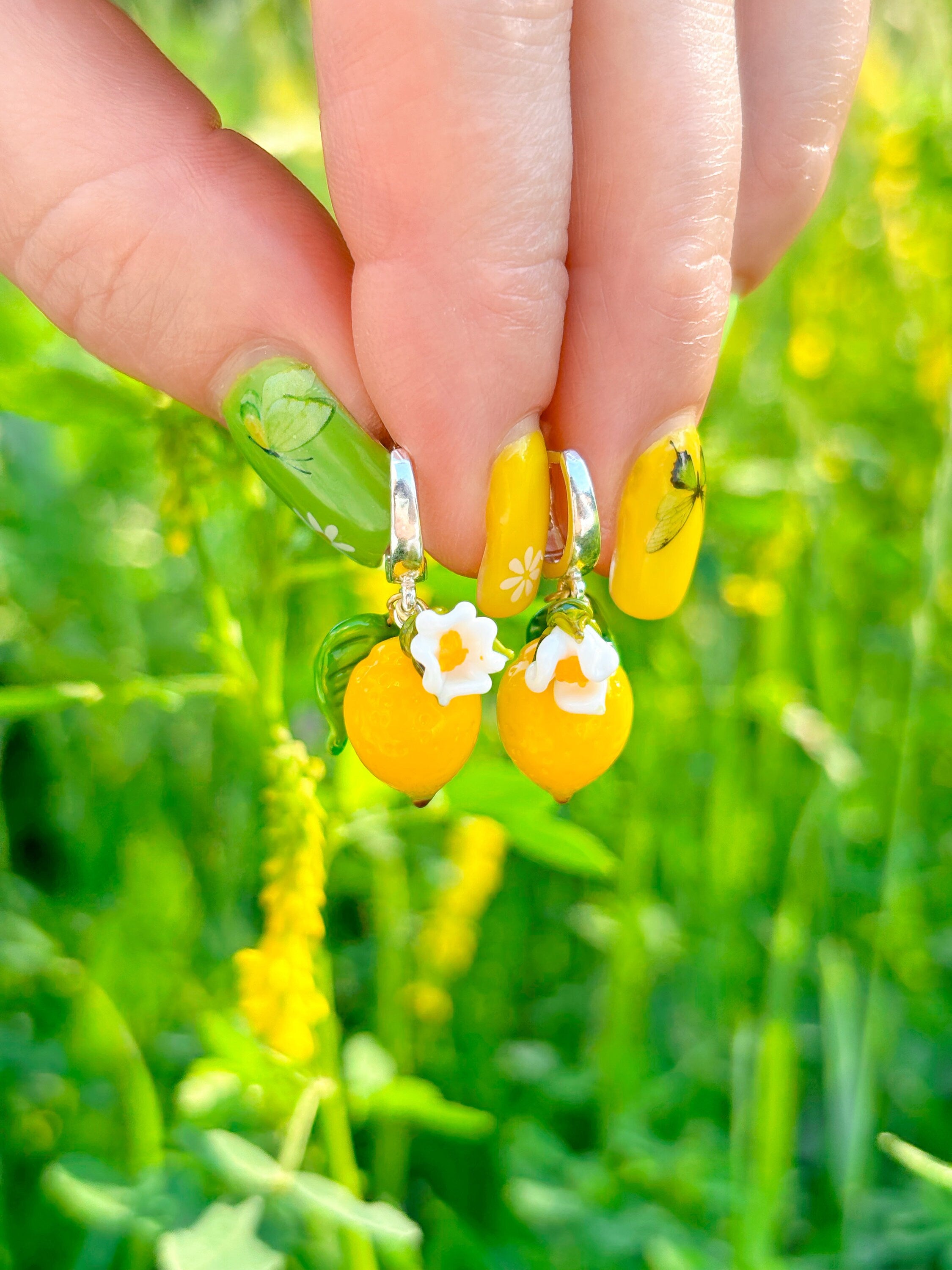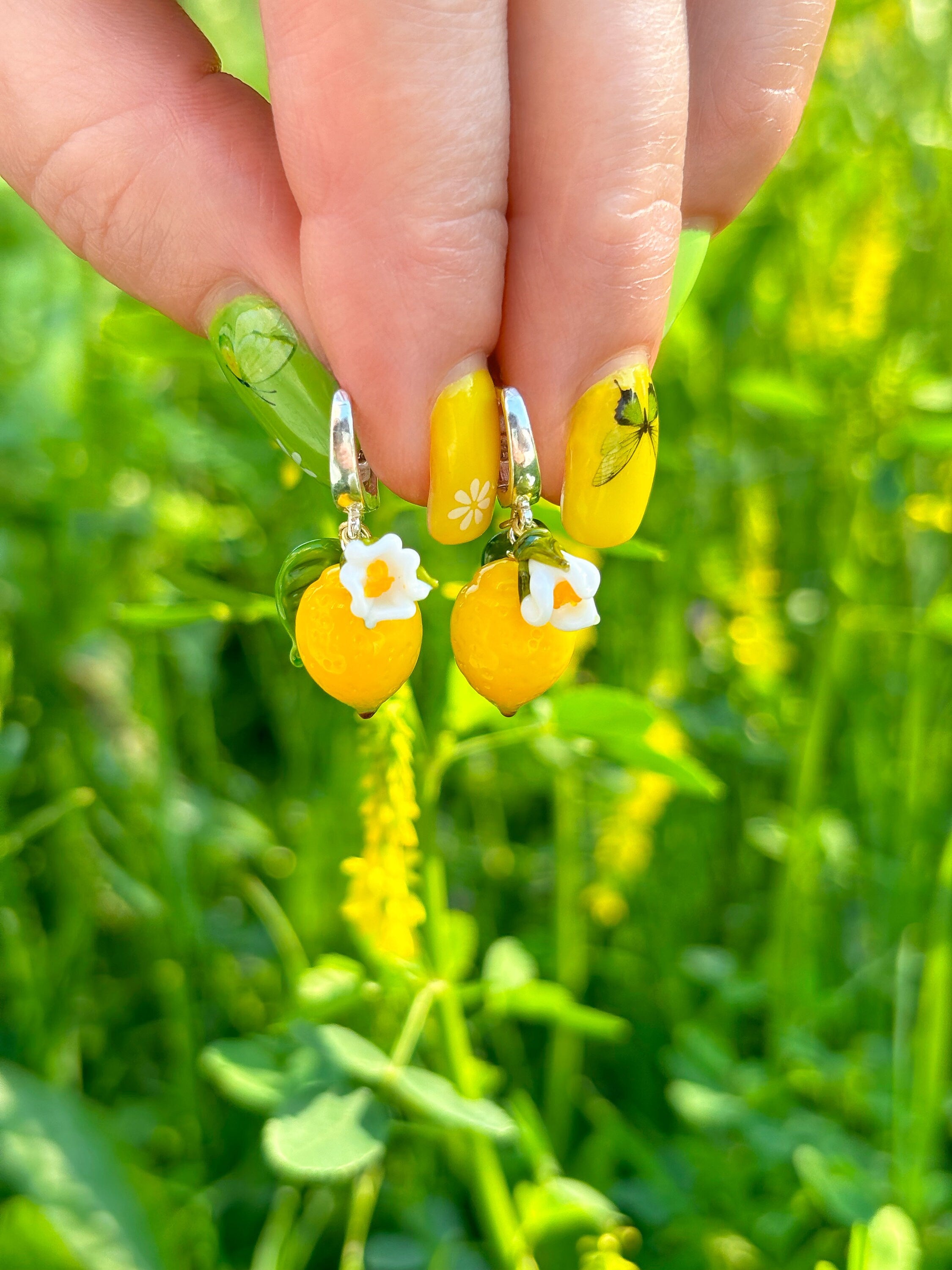 Discover these summer, nature-inspired lemon earrings with flowers🍋
