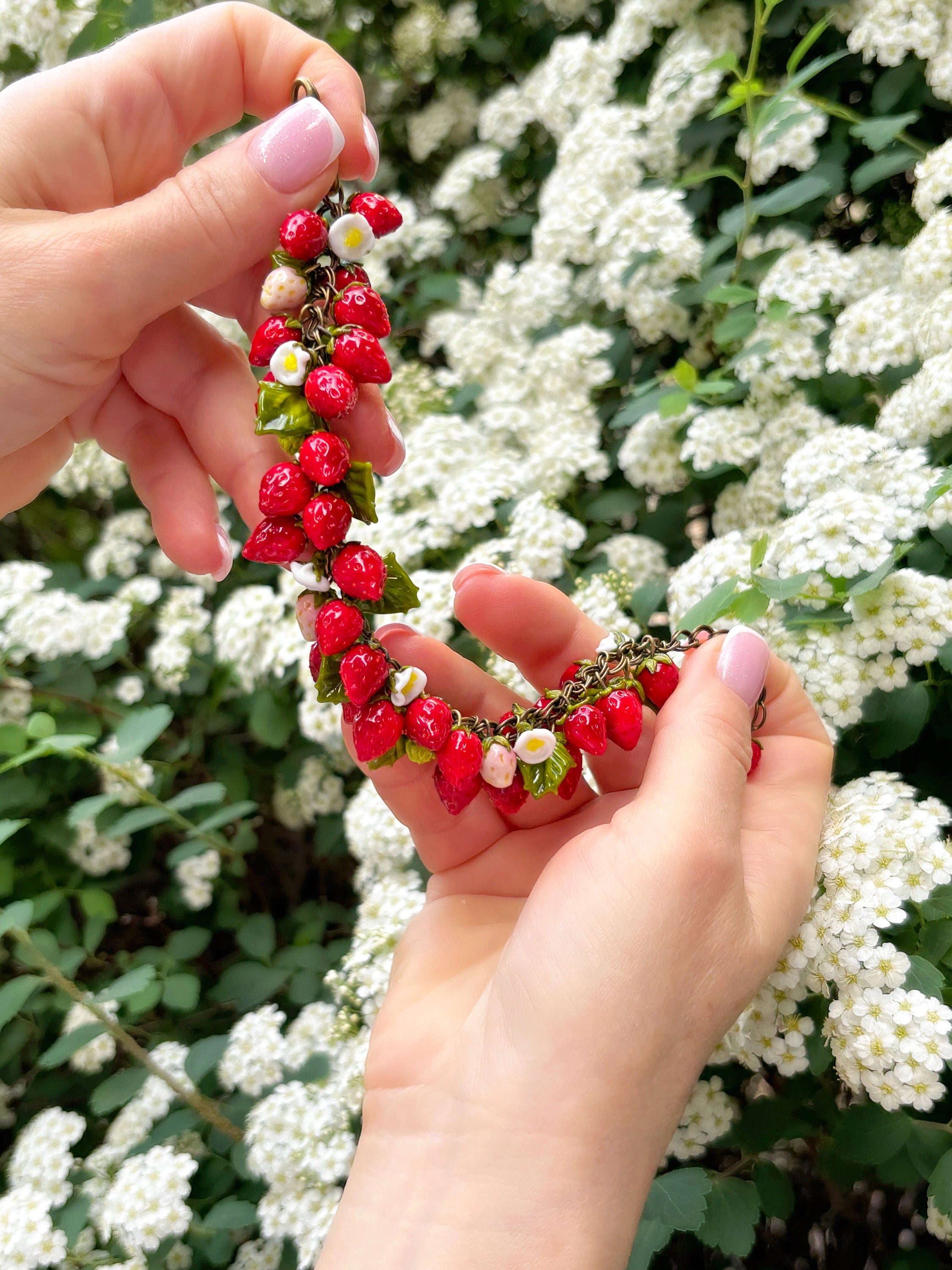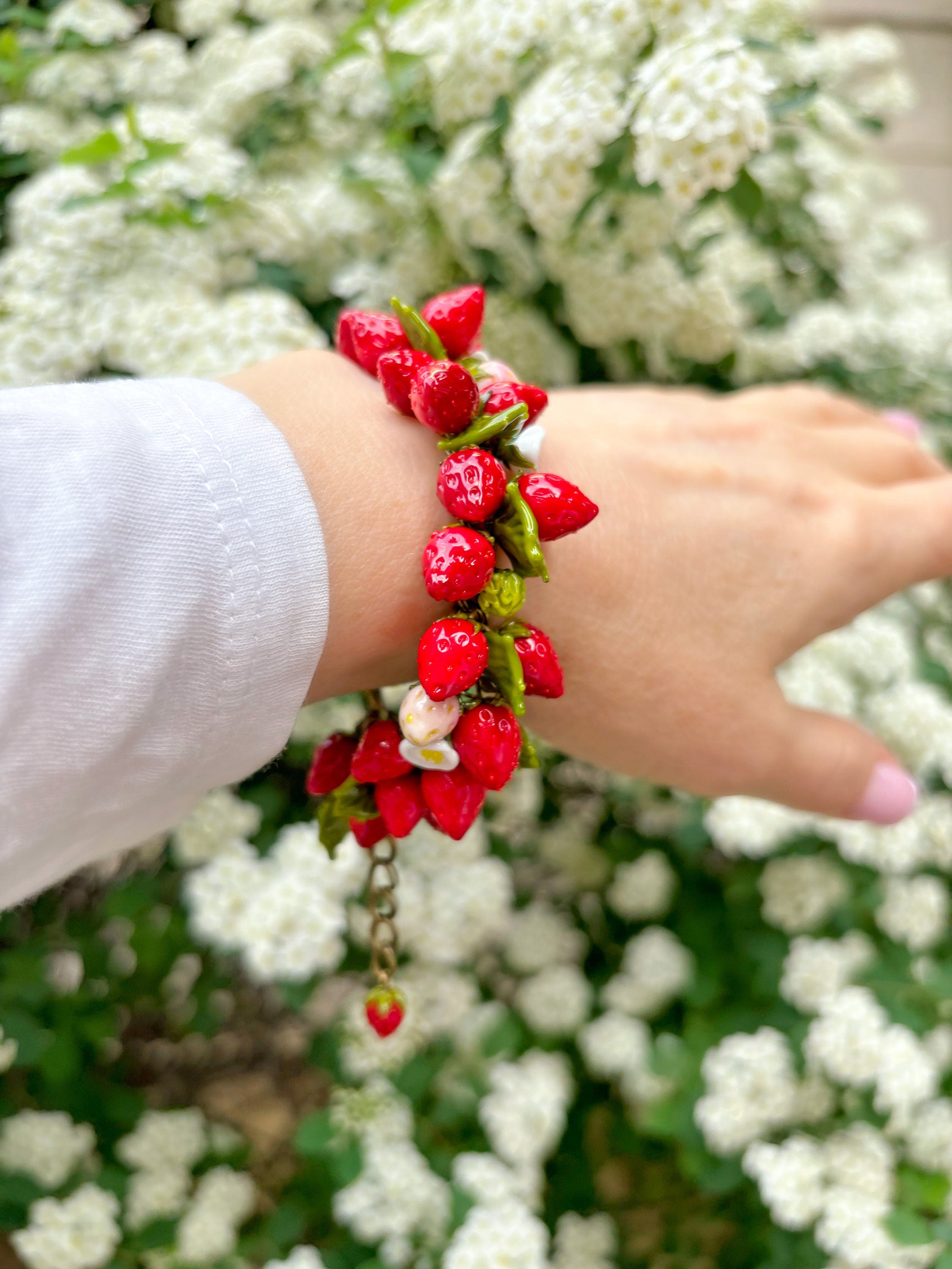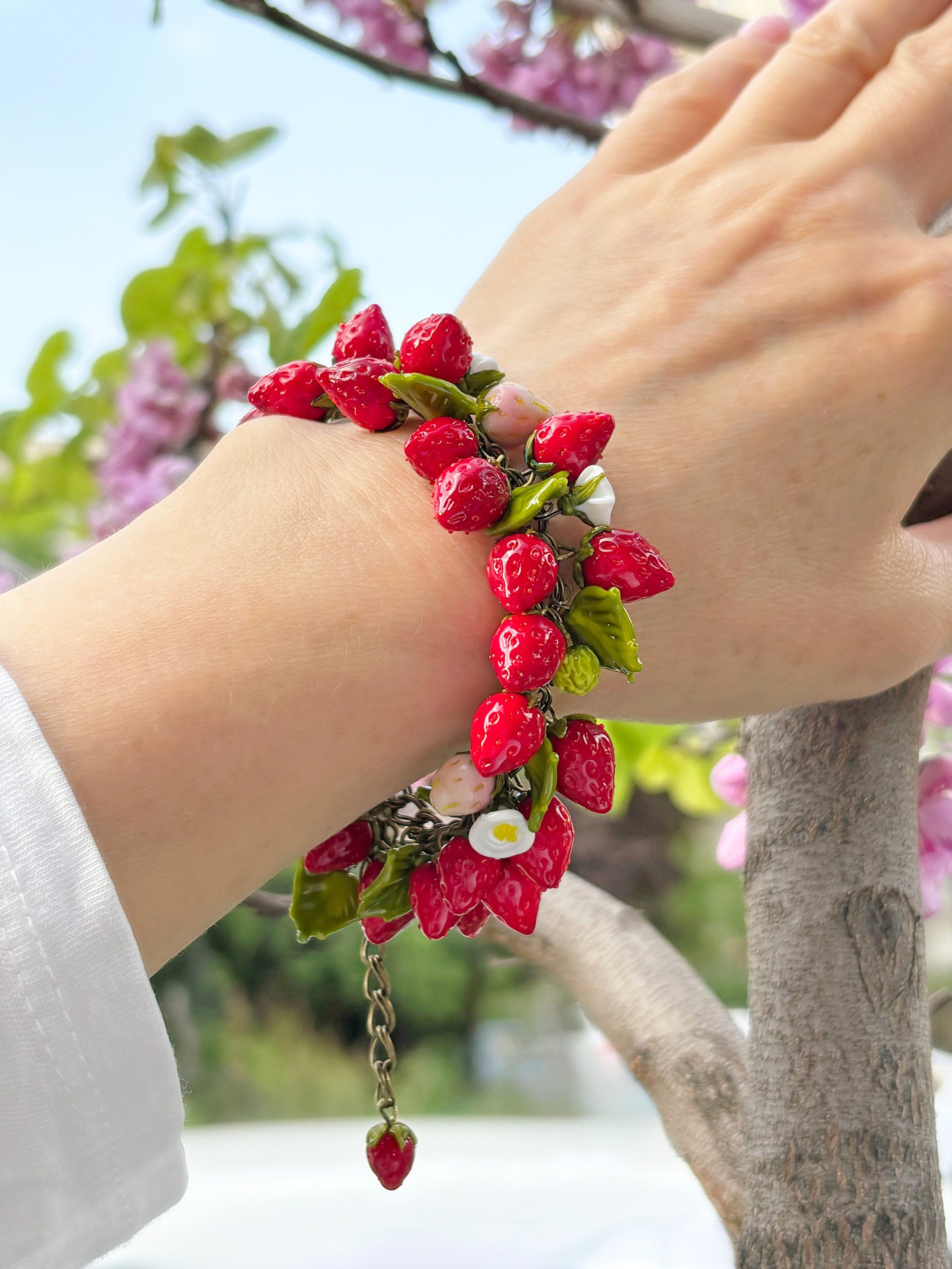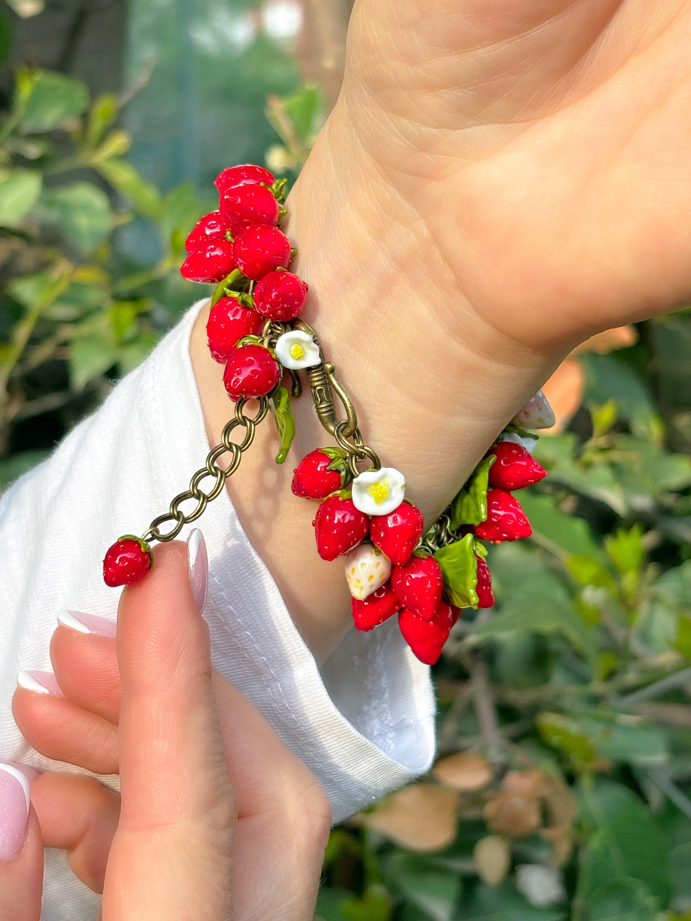 Discover this nature-inspired beautiful bracelet with realistic wild strawberries. Statement design makes it quickly go with any outfit and brings a renewed sense of style.