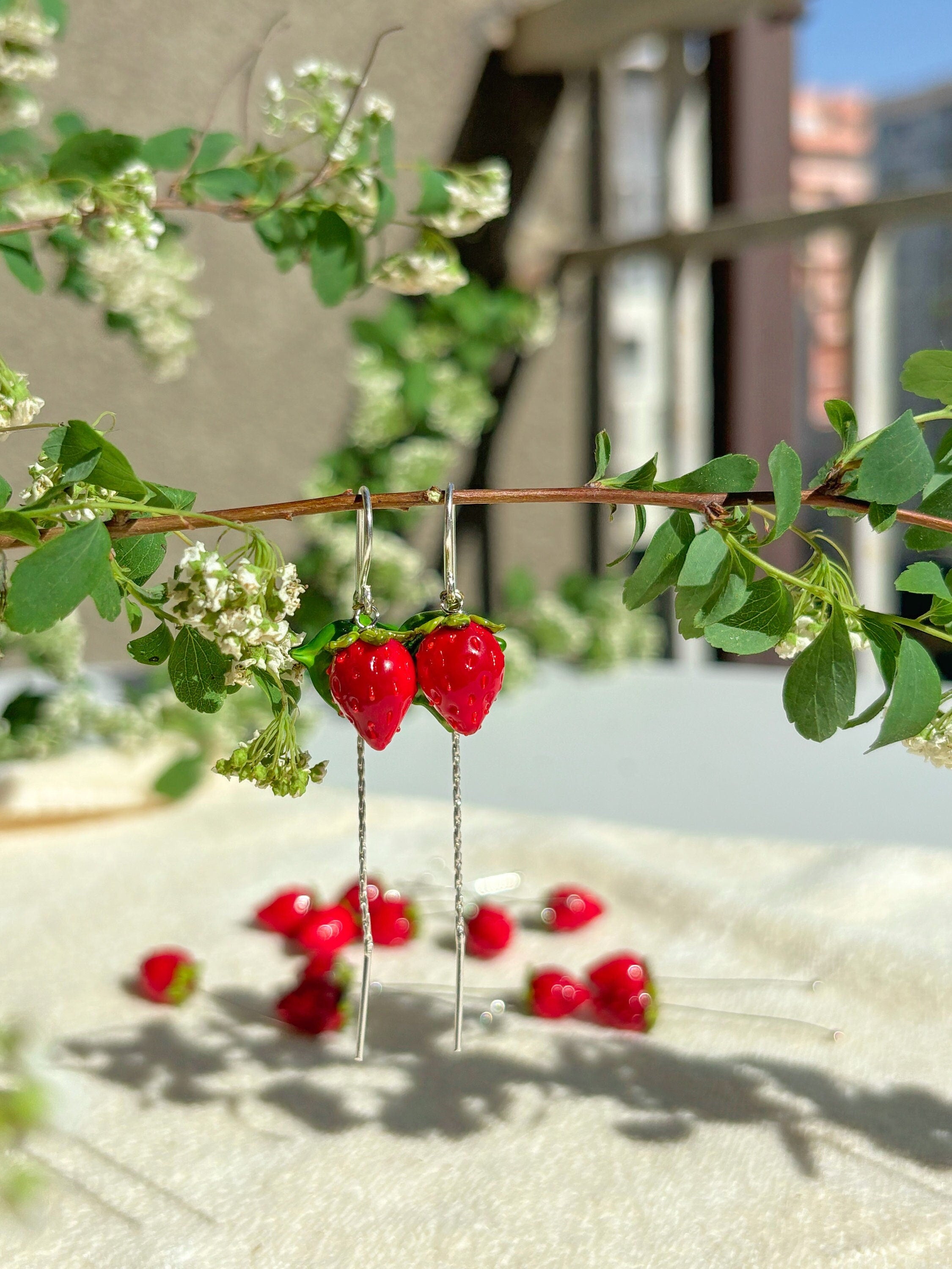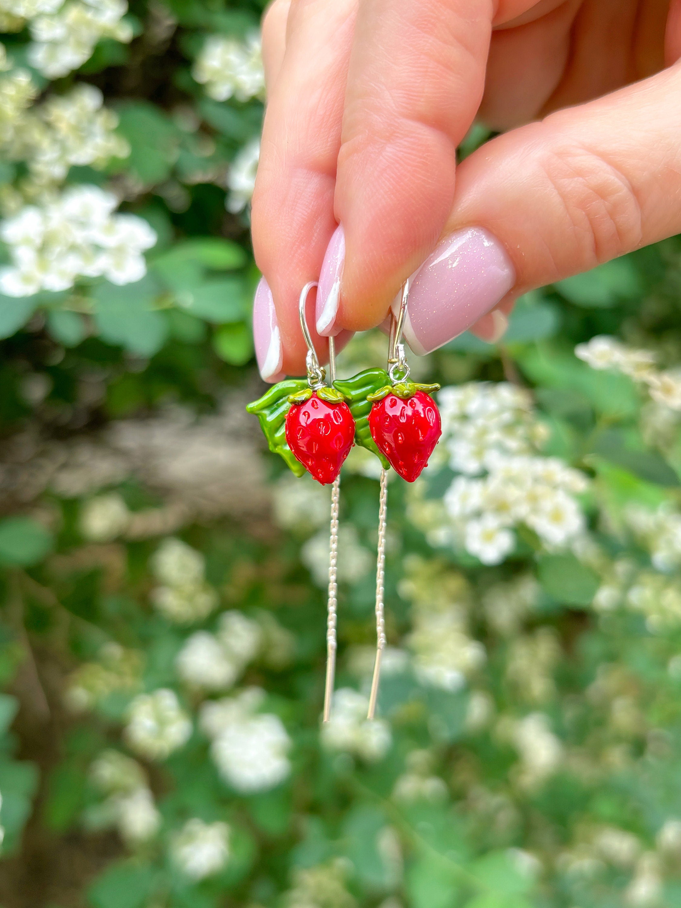 Adorable strawberries earrings - perfect for romantic outfit and a must-have for berry lovers