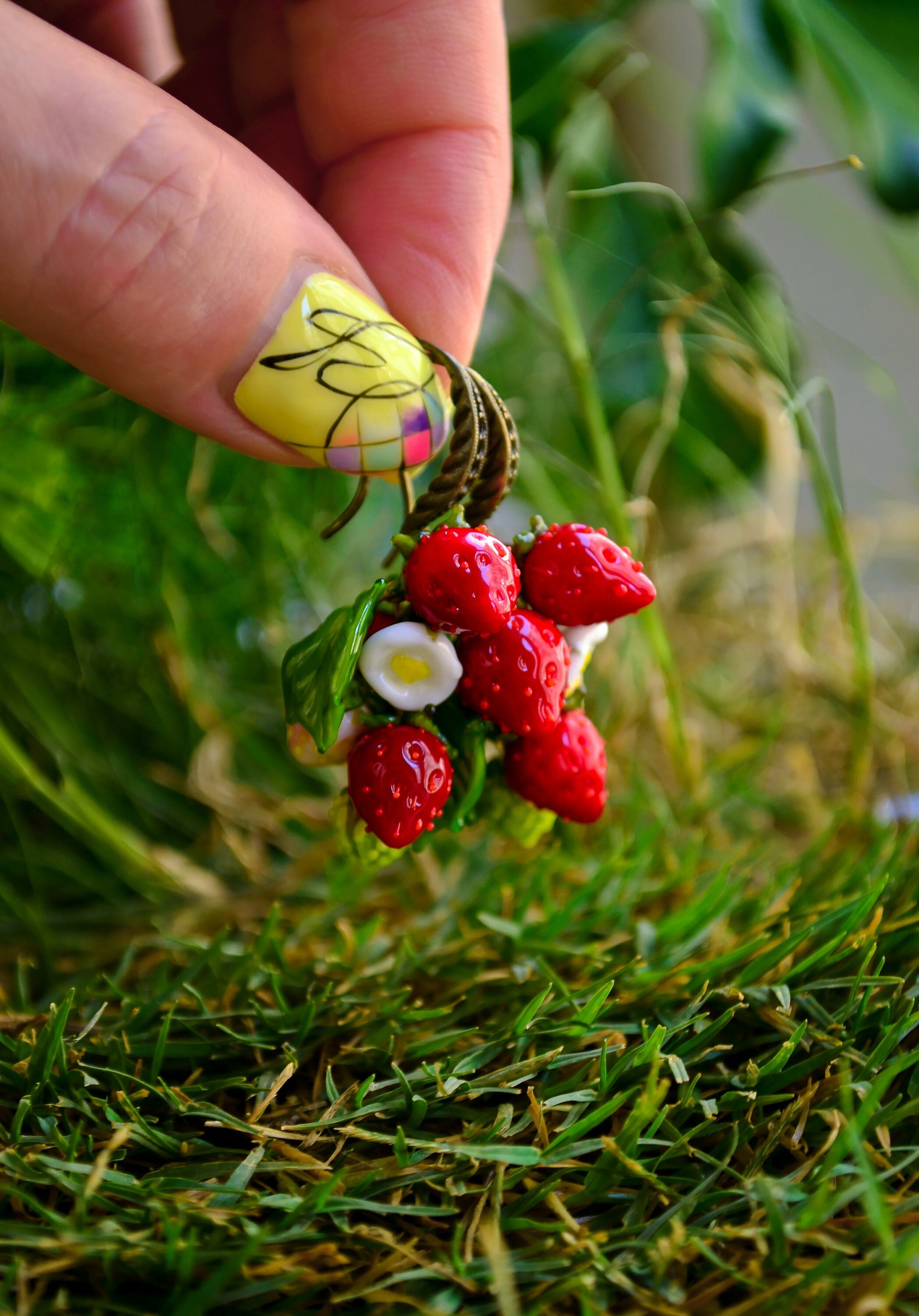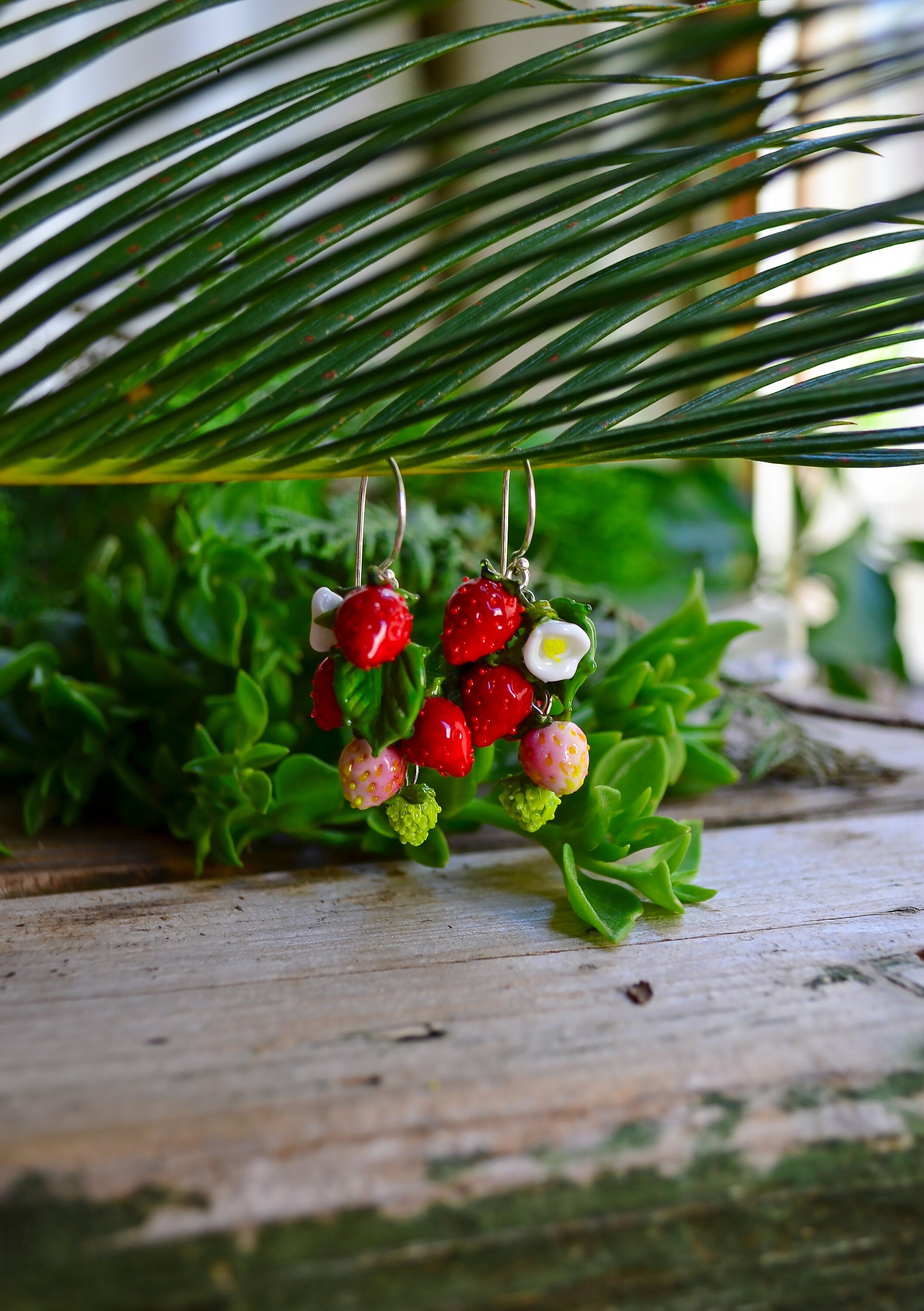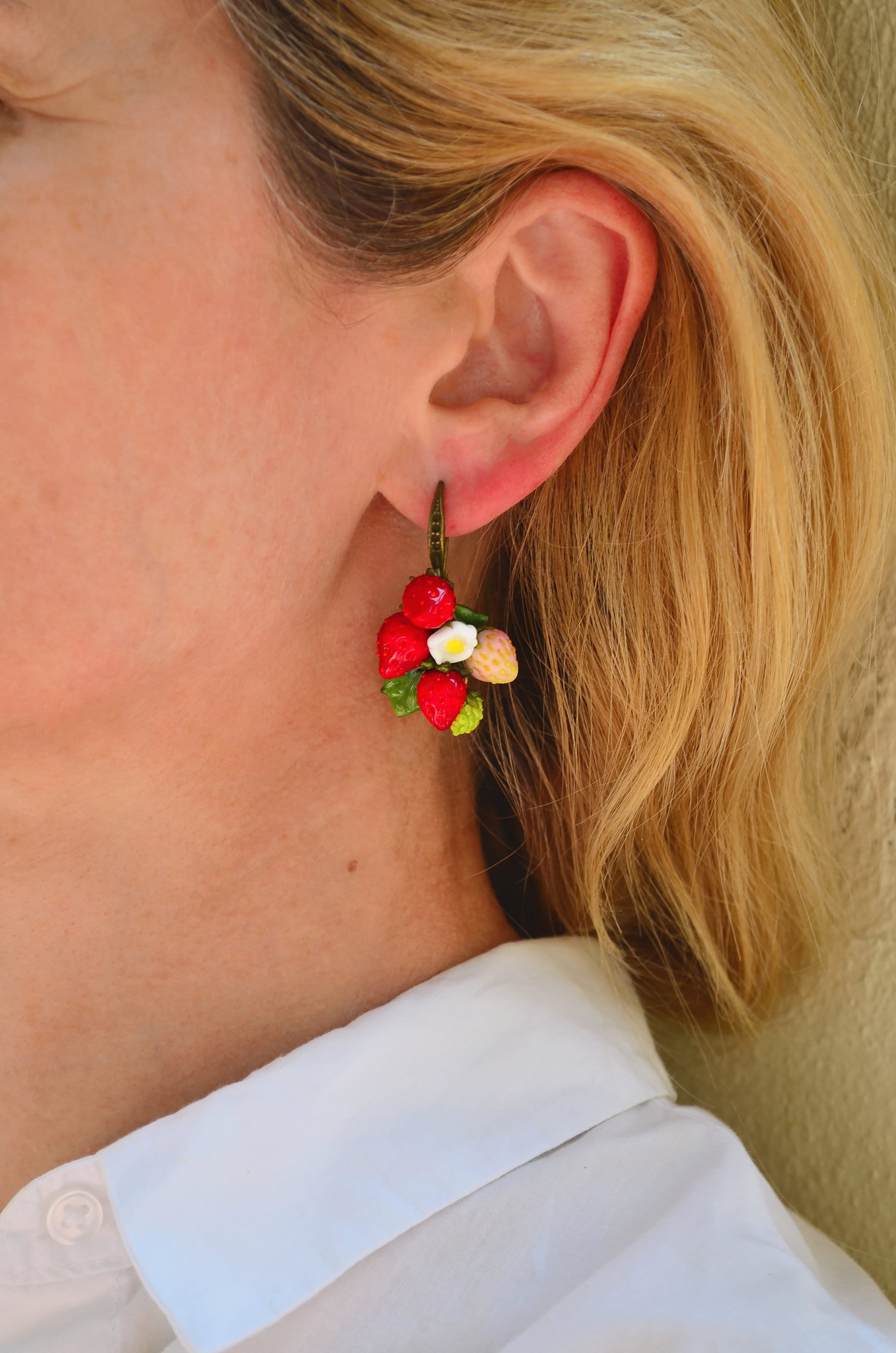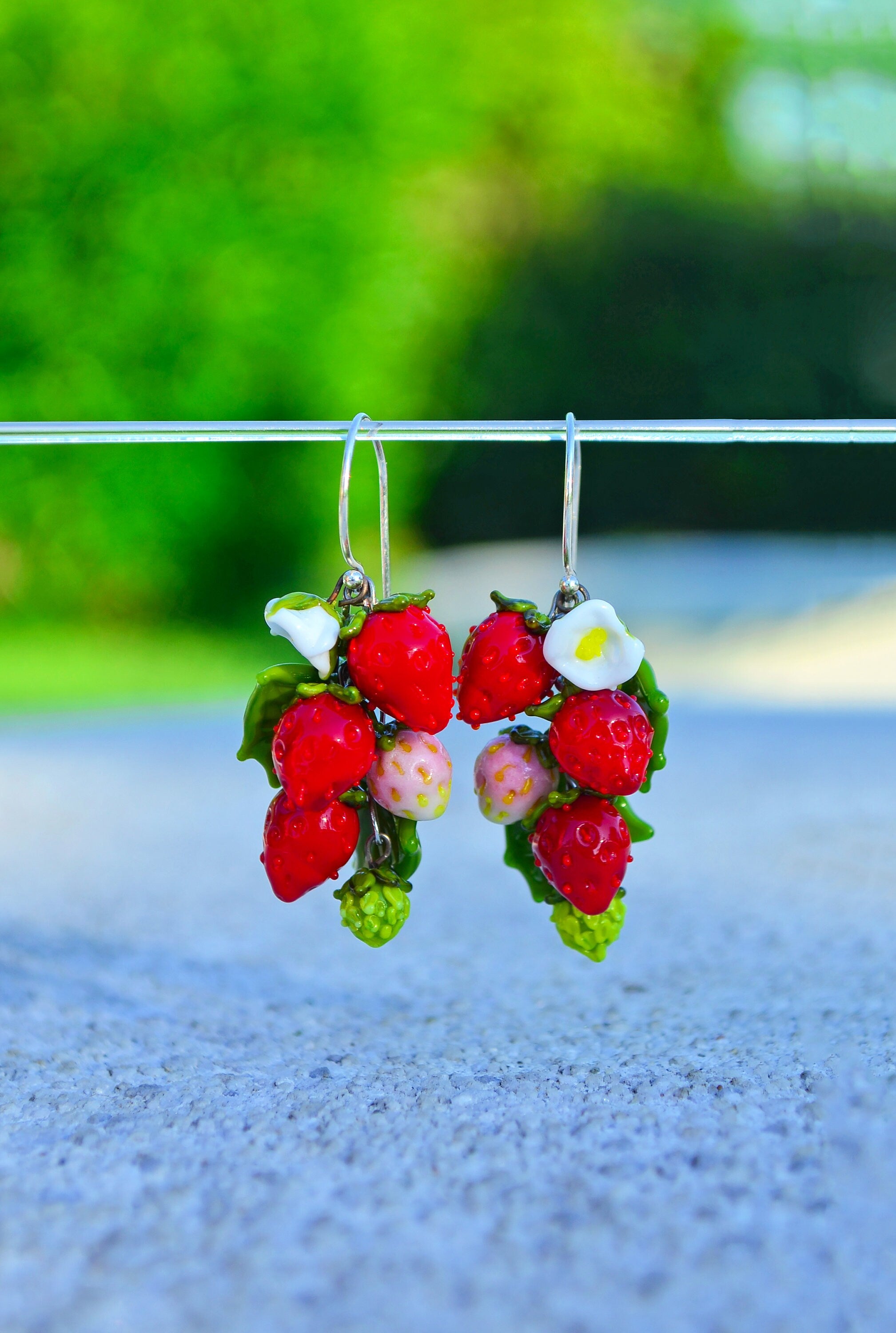 Wild Strawberry earrings, Glass earrings, Berries earrings, Murano Glass