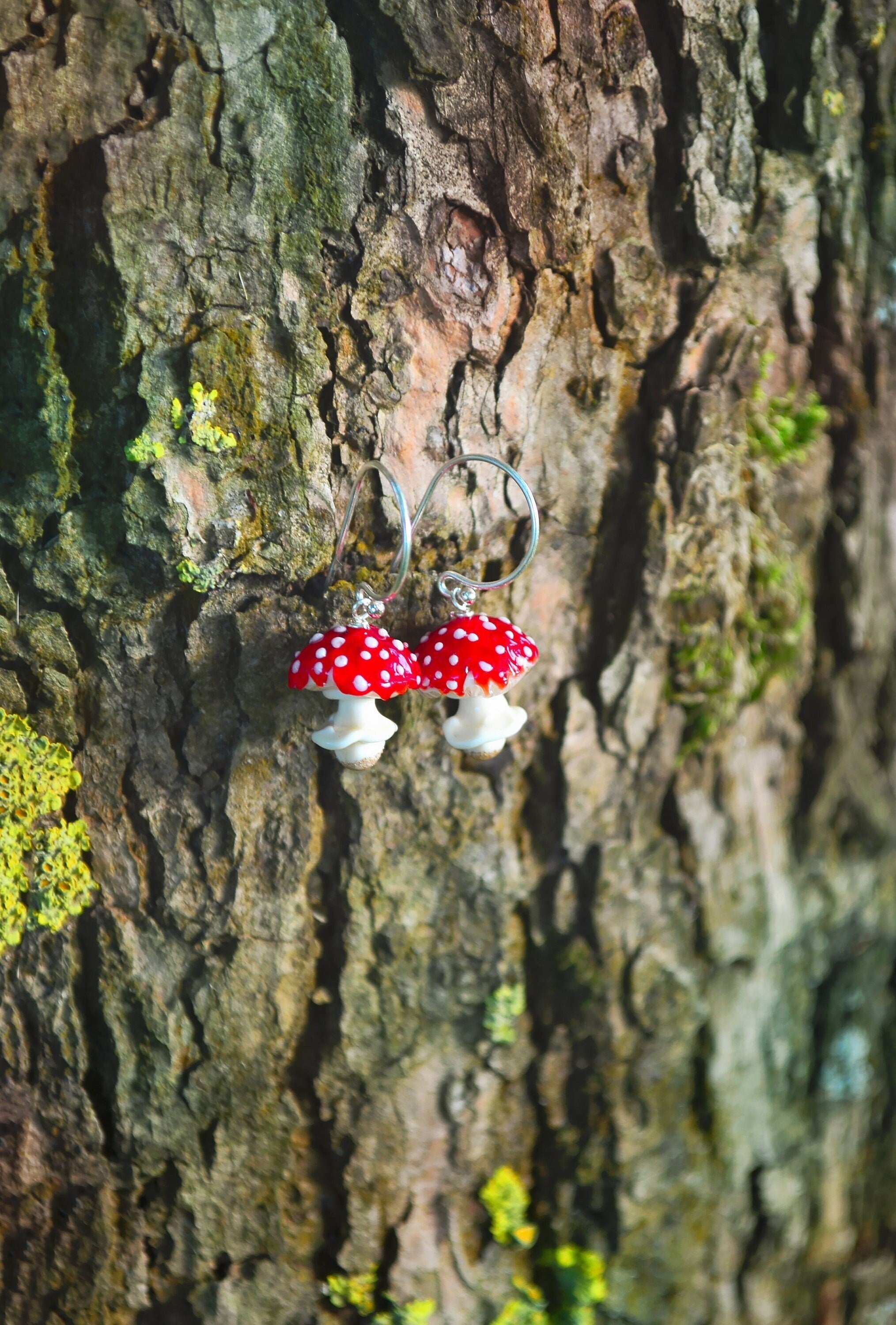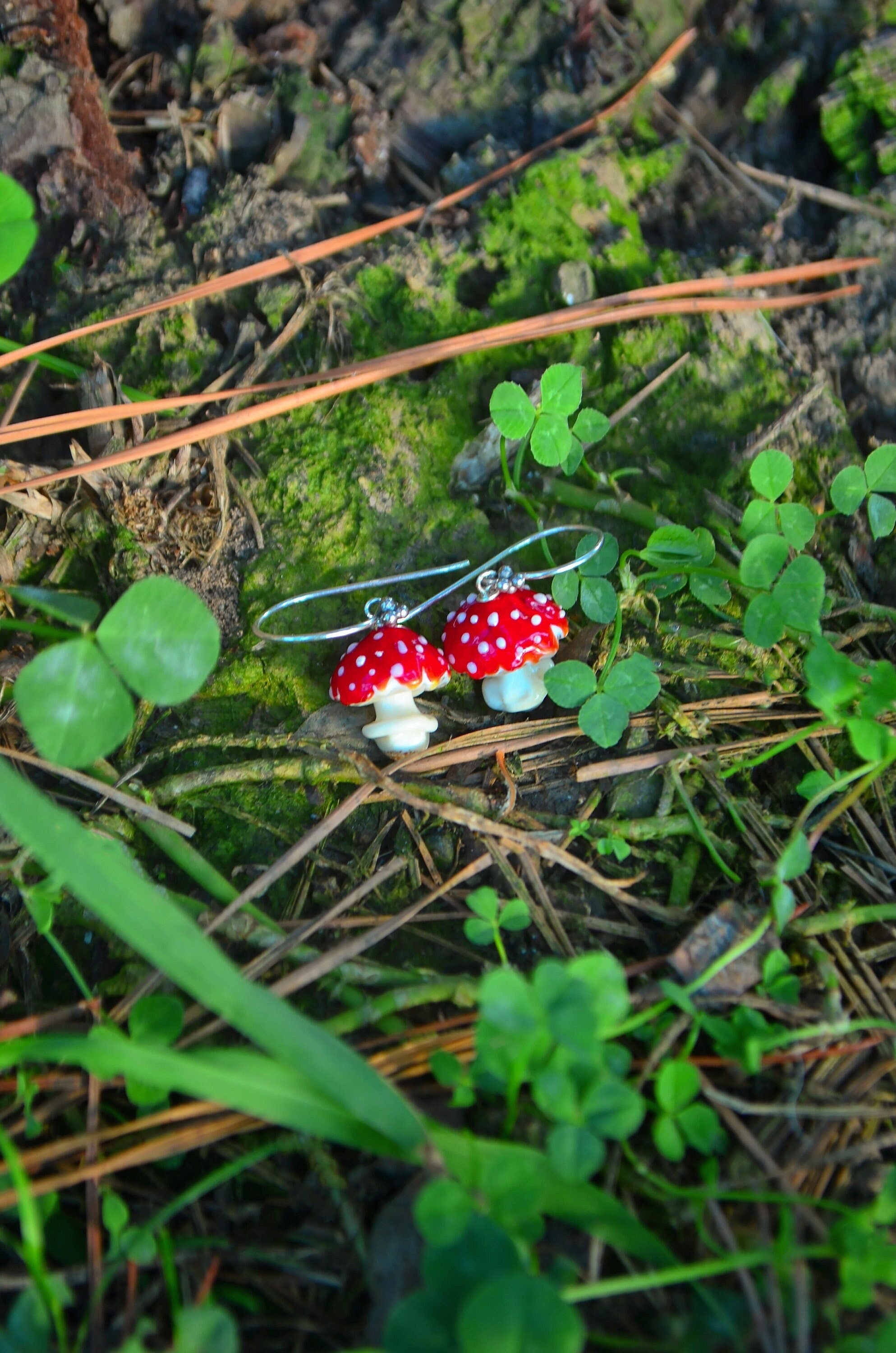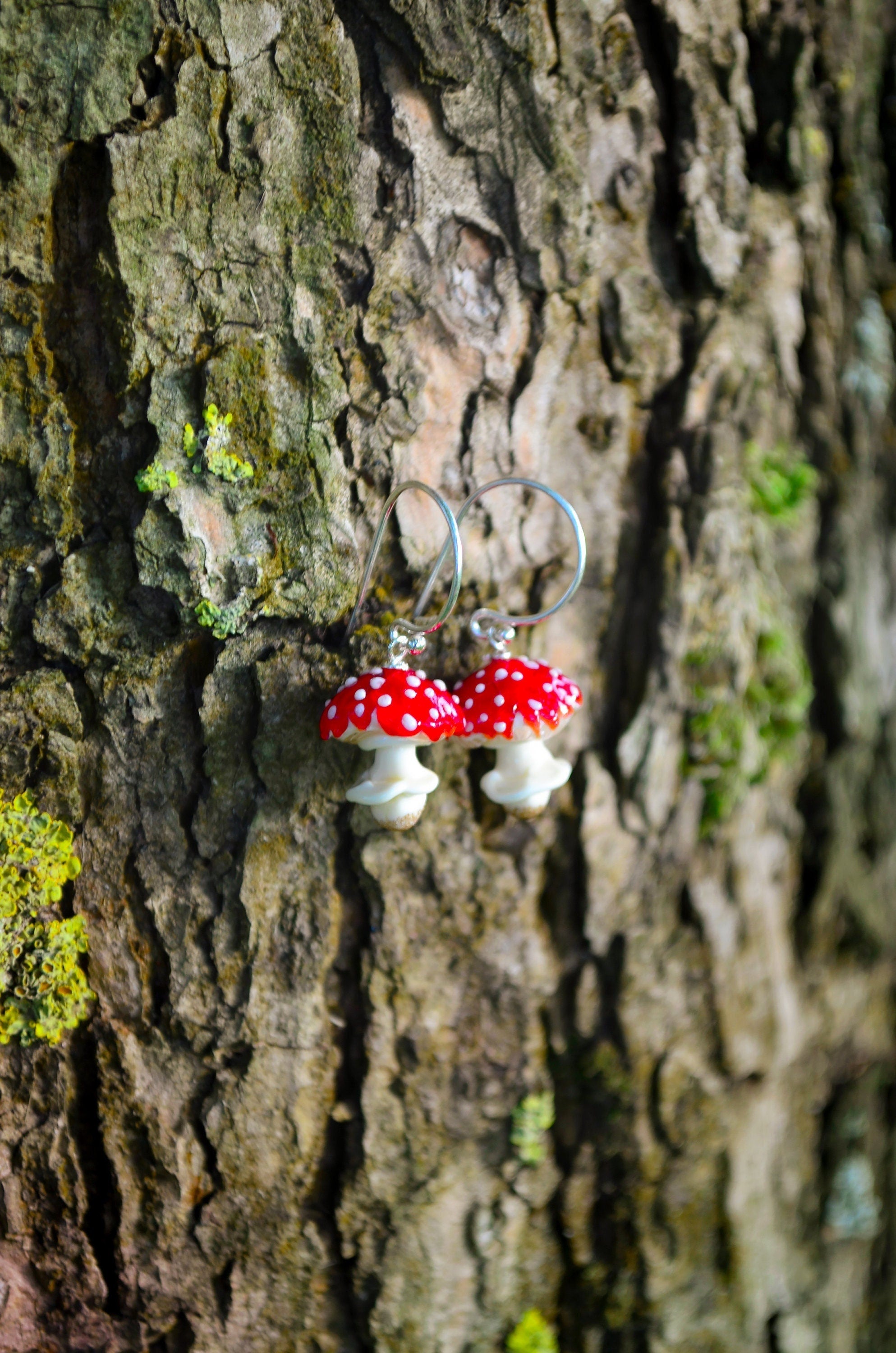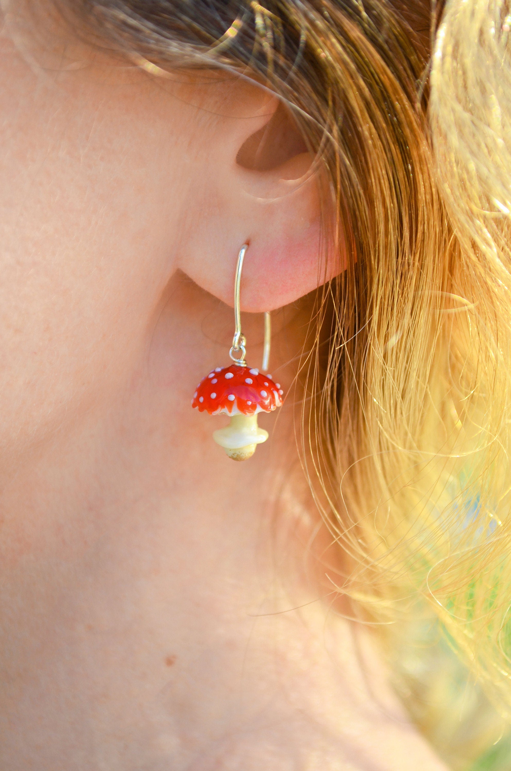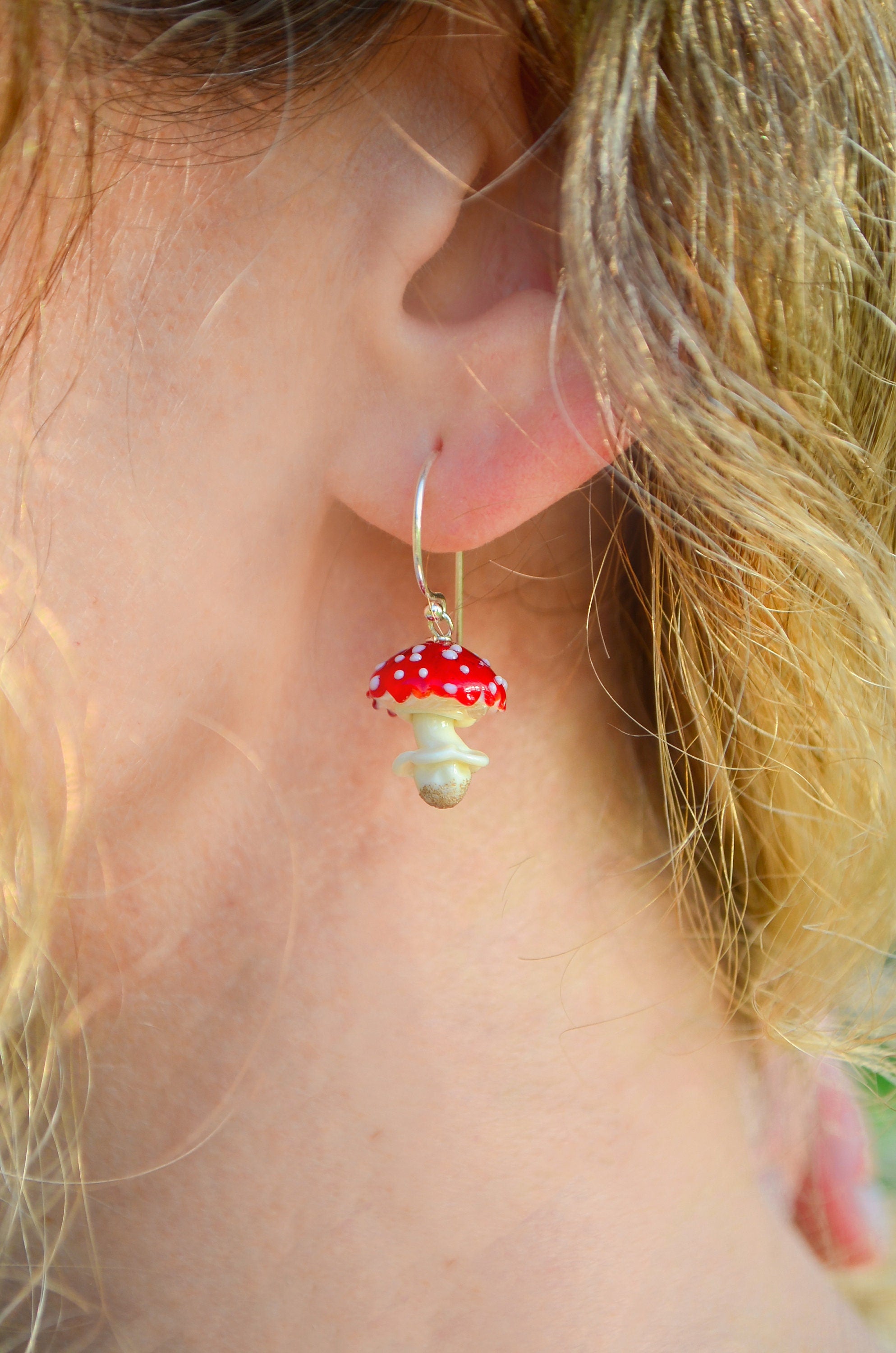 ⛅️🍂🍄Introducing Mushroom Earrings - crafted with love from glass and featuring 925 sterling silver ear hooks. Ideal for nature lovers, cottagecore fans, and mushroom enthusiasts.