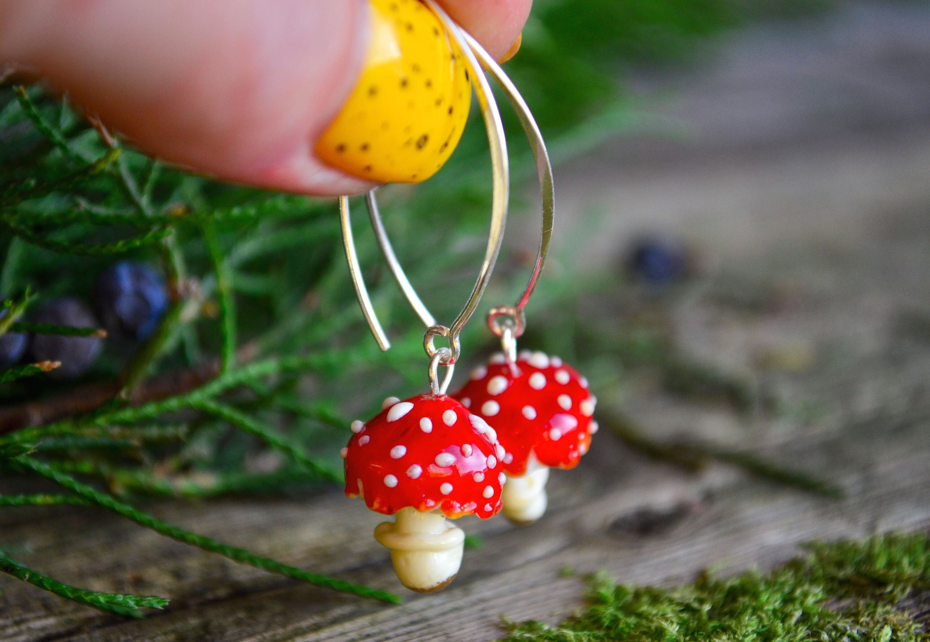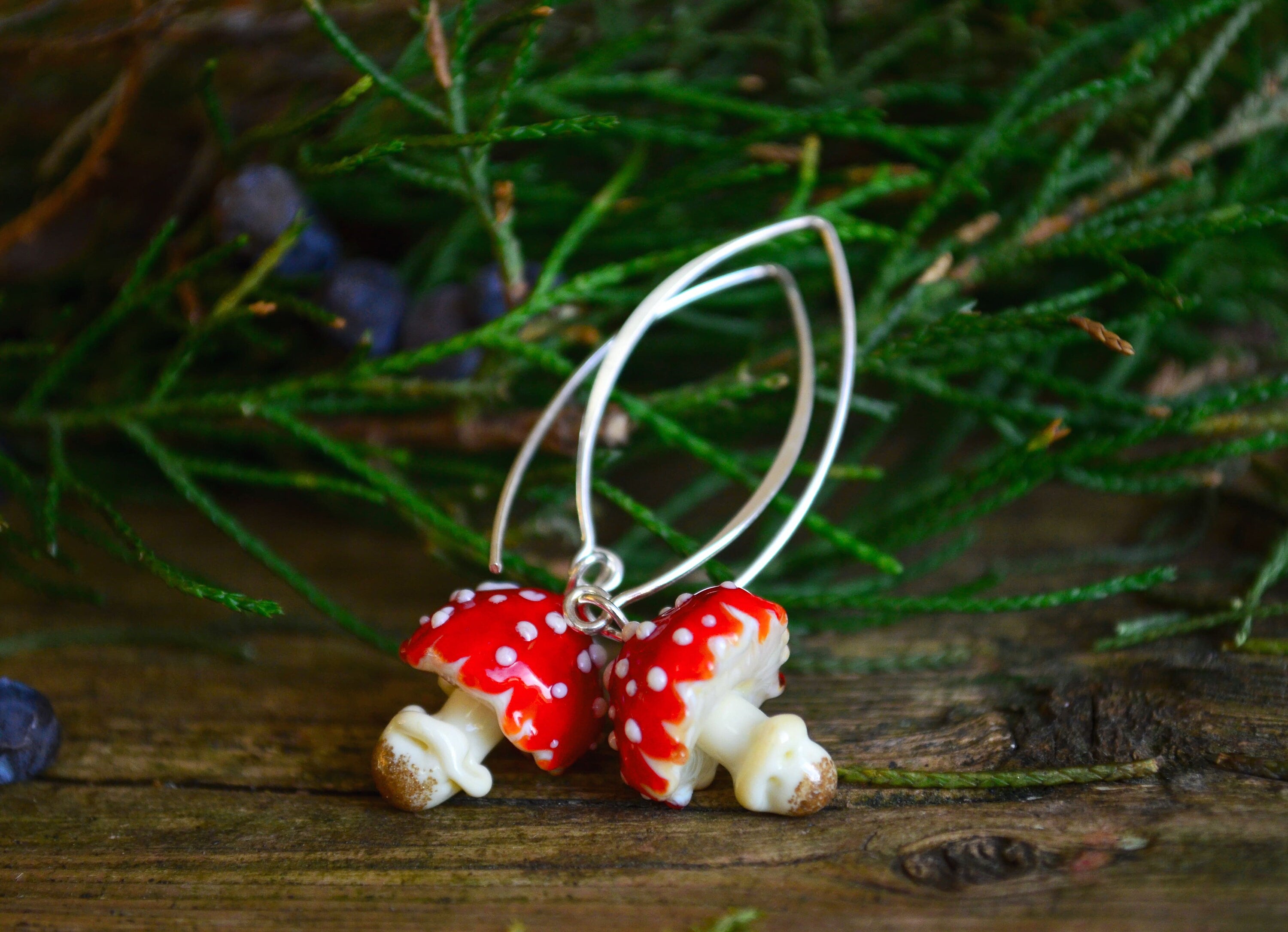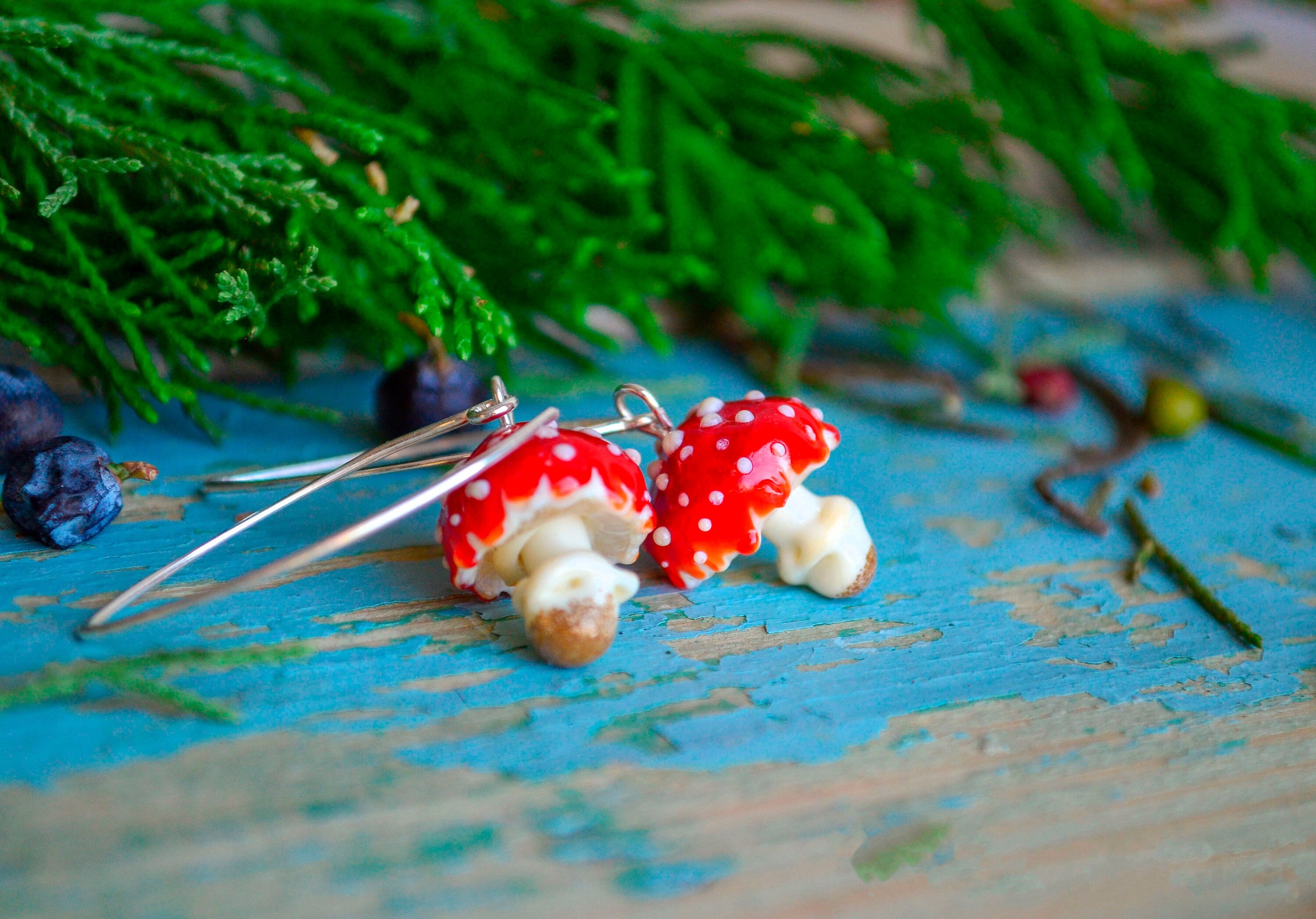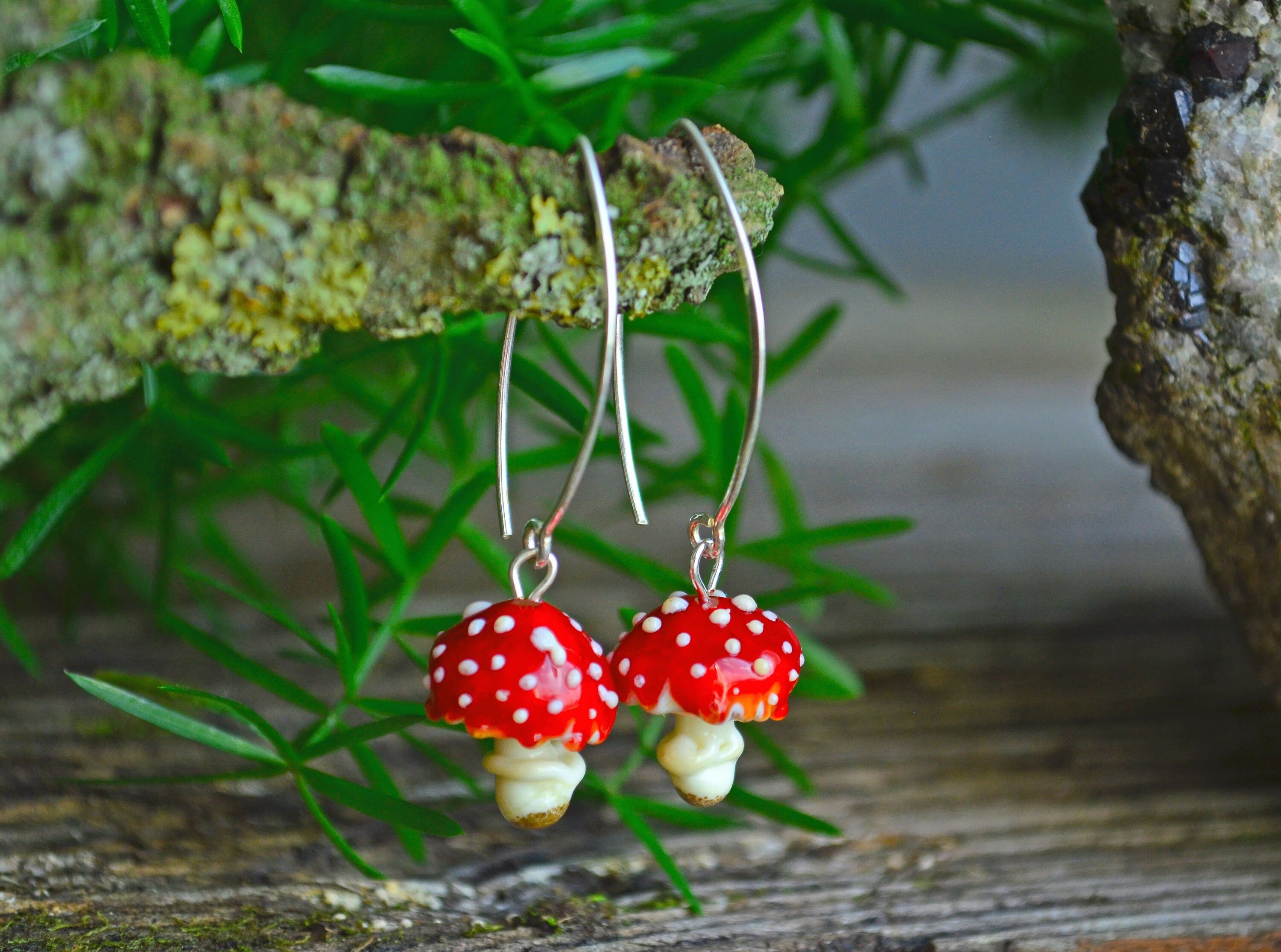 ⛅️🍂🍄Introducing Mushroom Earrings - crafted with love from glass and featuring 925 sterling silver ear hooks. Ideal for nature lovers, cottagecore fans, and mushroom enthusiasts.