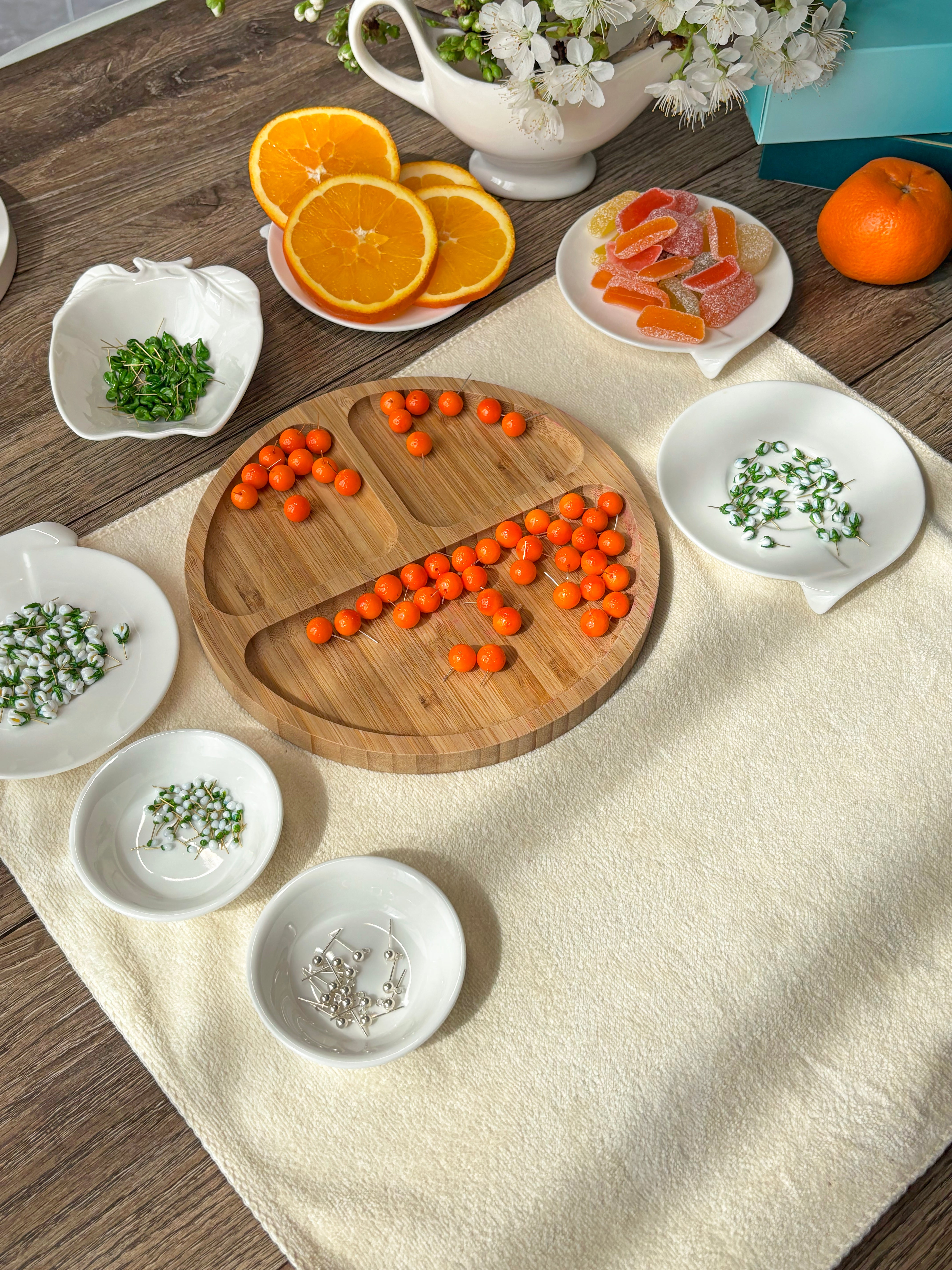 At LuckyLapki, each piece is a unique work of art, lovingly designed and handcrafted in our cozy studio. All the oranges are created using the ancient art of lampworking, ensuring that each item carries not only the essence of Mediterranean sunshine but also centuries of glass artisan tradition.