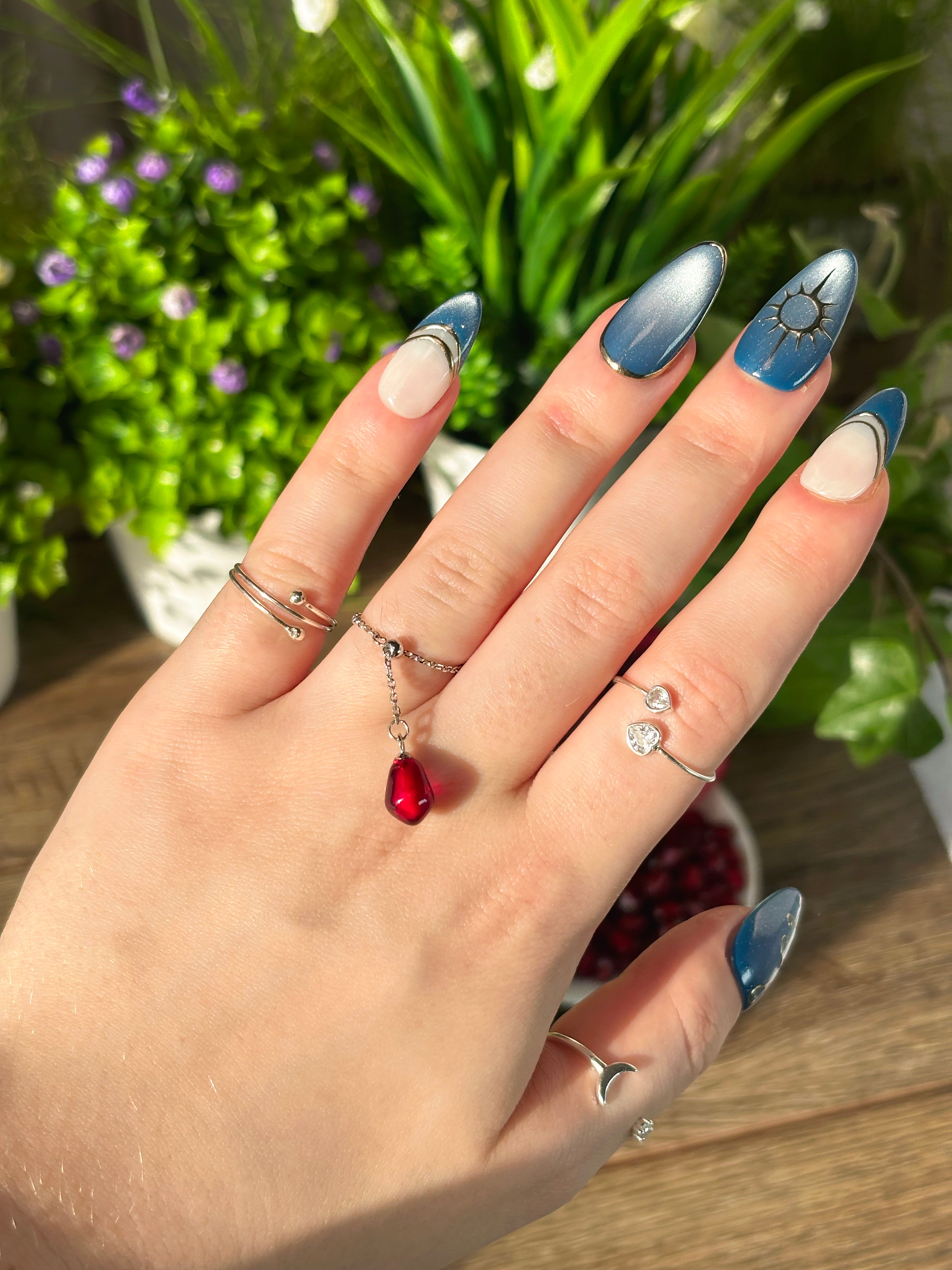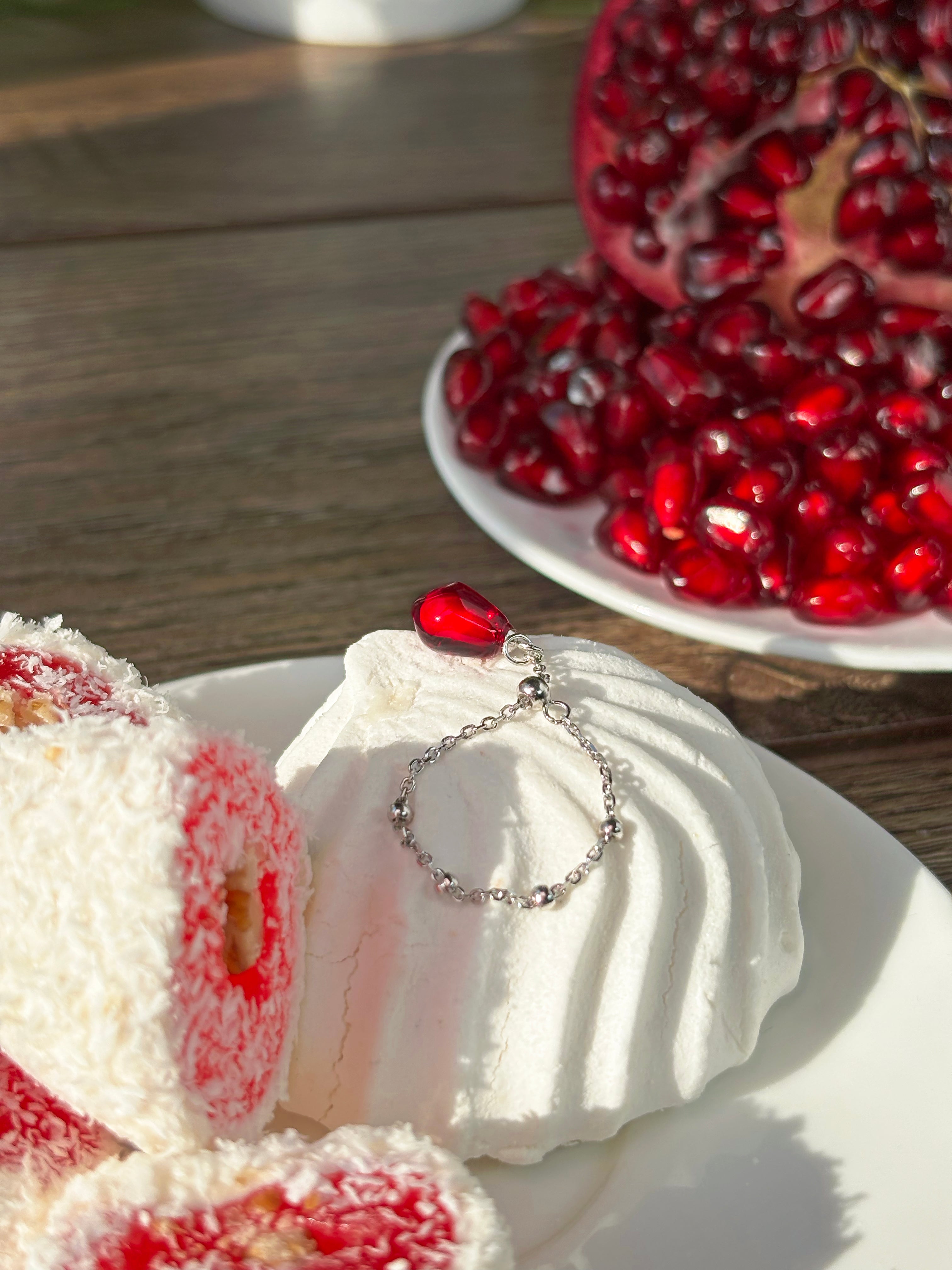 Pomegranate Seed Ring, Adjustable Chain Ring