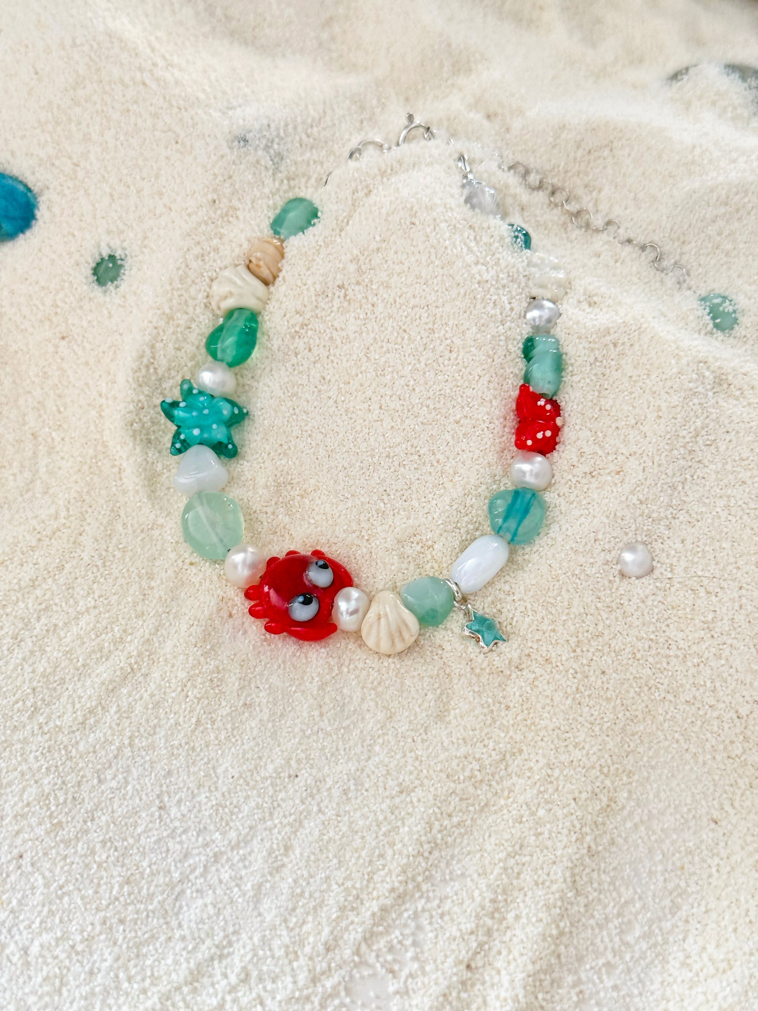 Nestled between the glass ocean creatures, youâll find a sparkling aqua star set with cubic zirconia âš and lustrous freshwater pearls, adding a soft ocean shimmer to the design. Shell beads and sea-green accents bring the whole piece to life.