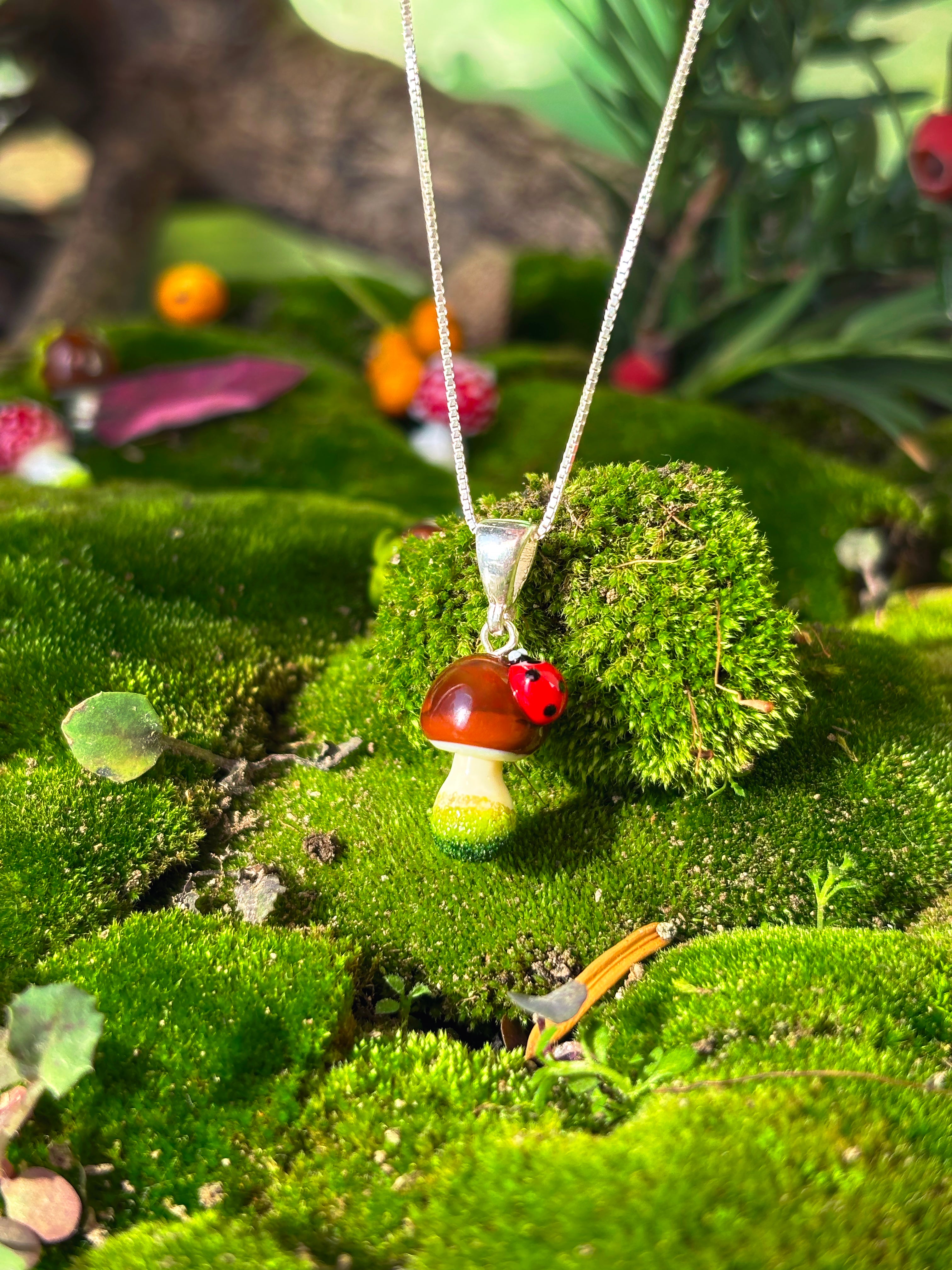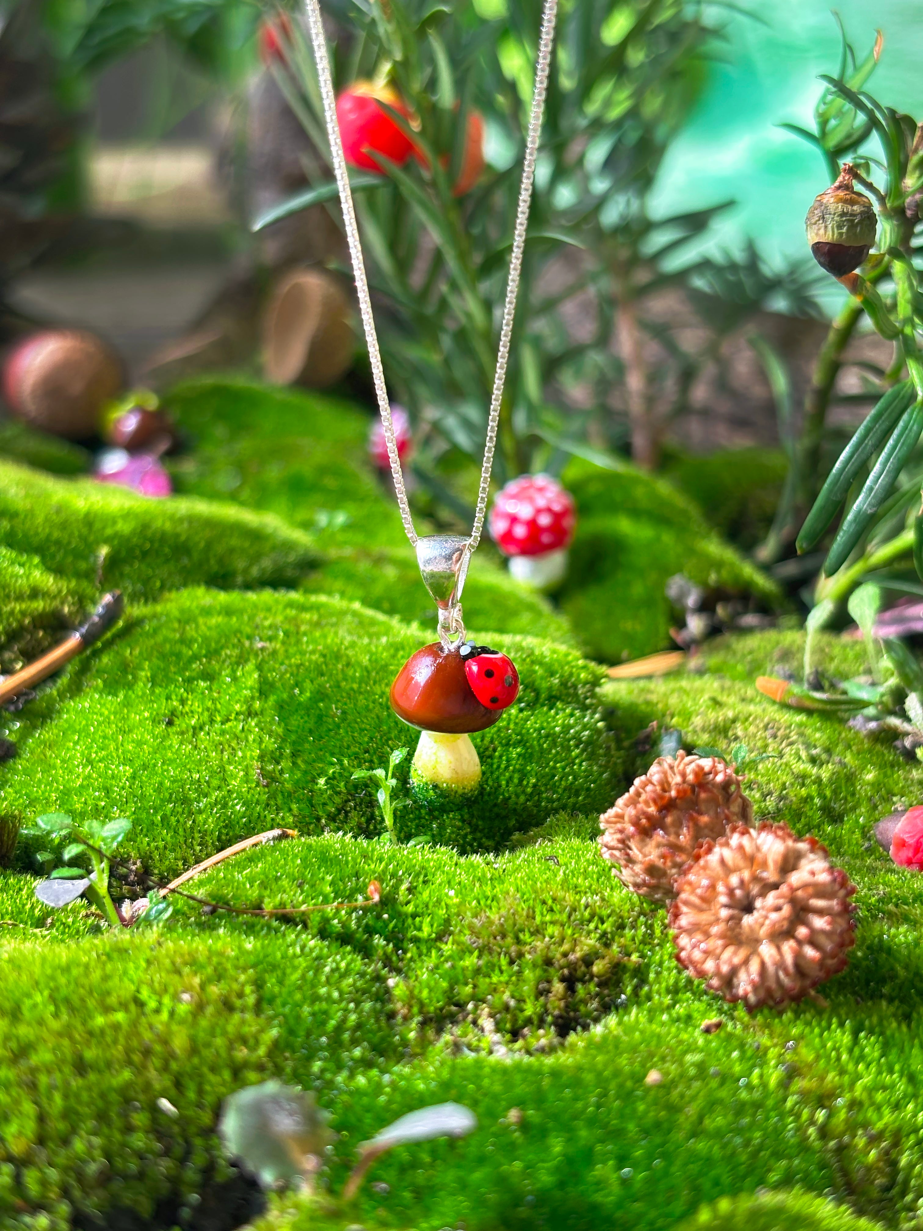 Please note that every piece is individually handmade, meaning each ladybug and mushroom will have its own unique charm — no two are ever exactly alike.