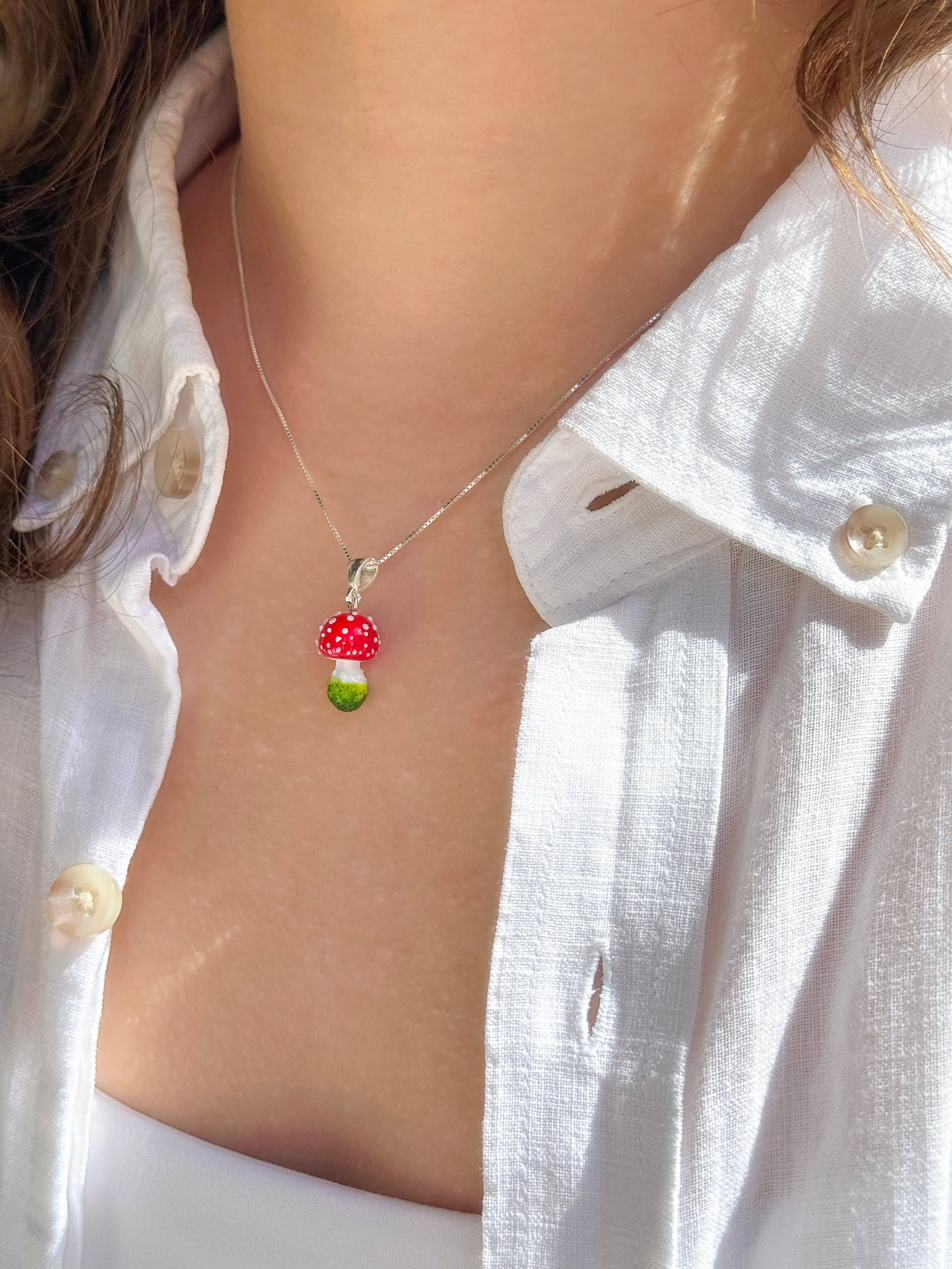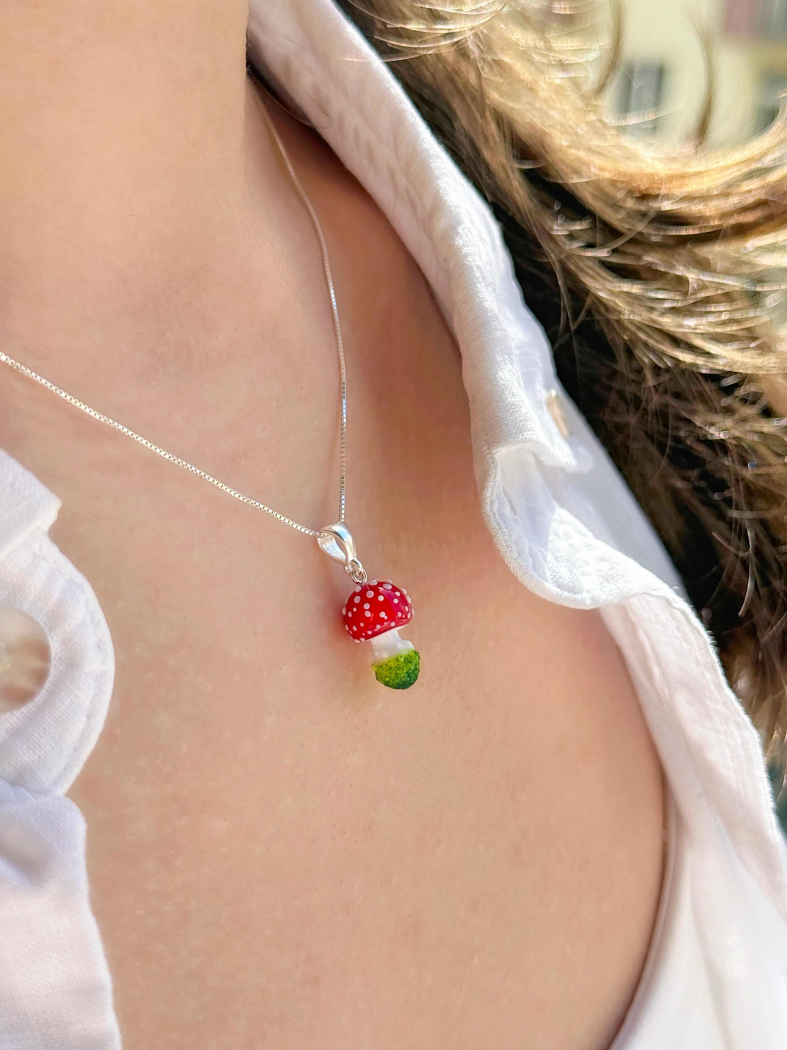 Please note that each mushroom is made individually by hand, so slight variations in shape and color make your pendant truly one of a kind.