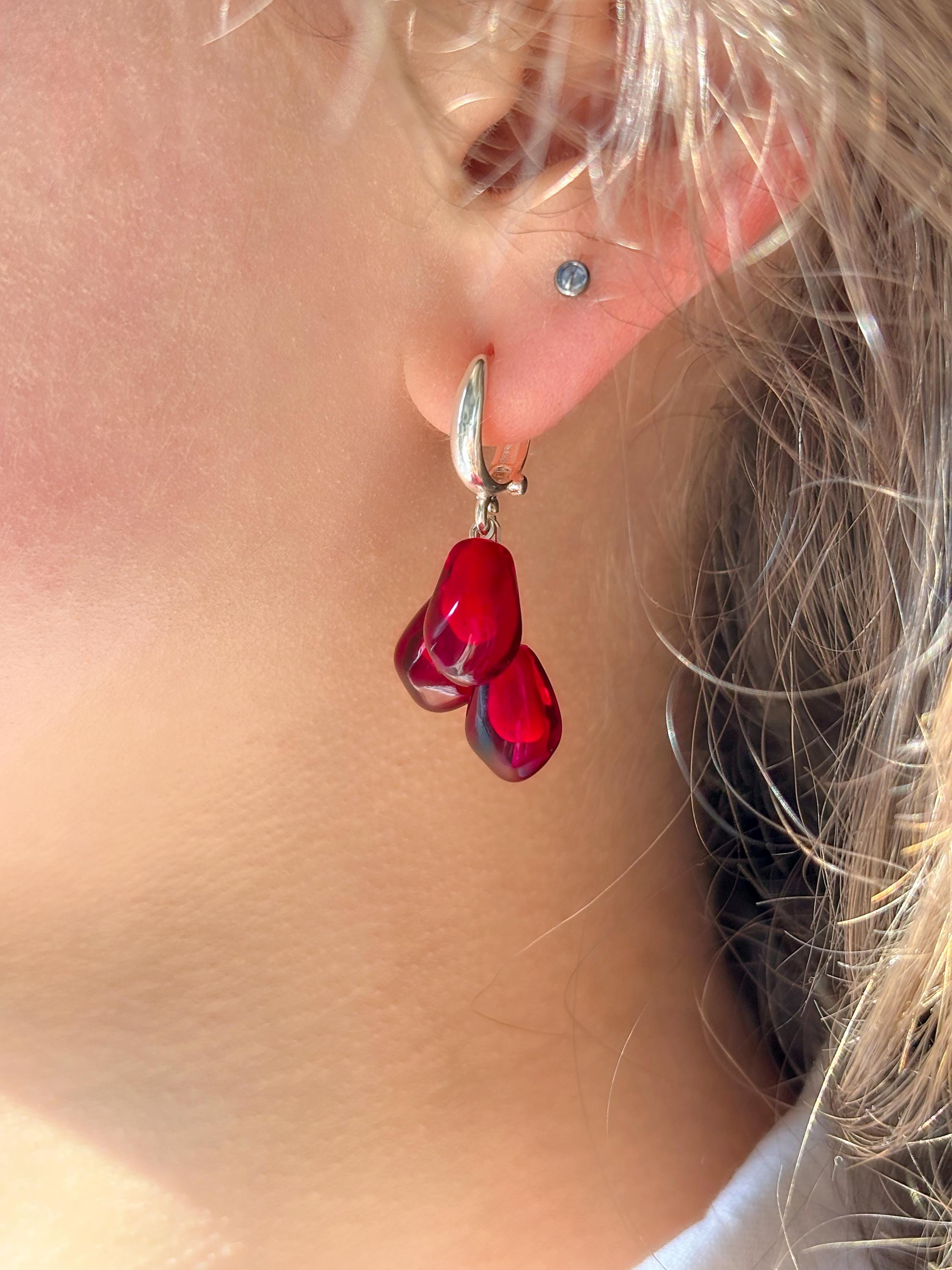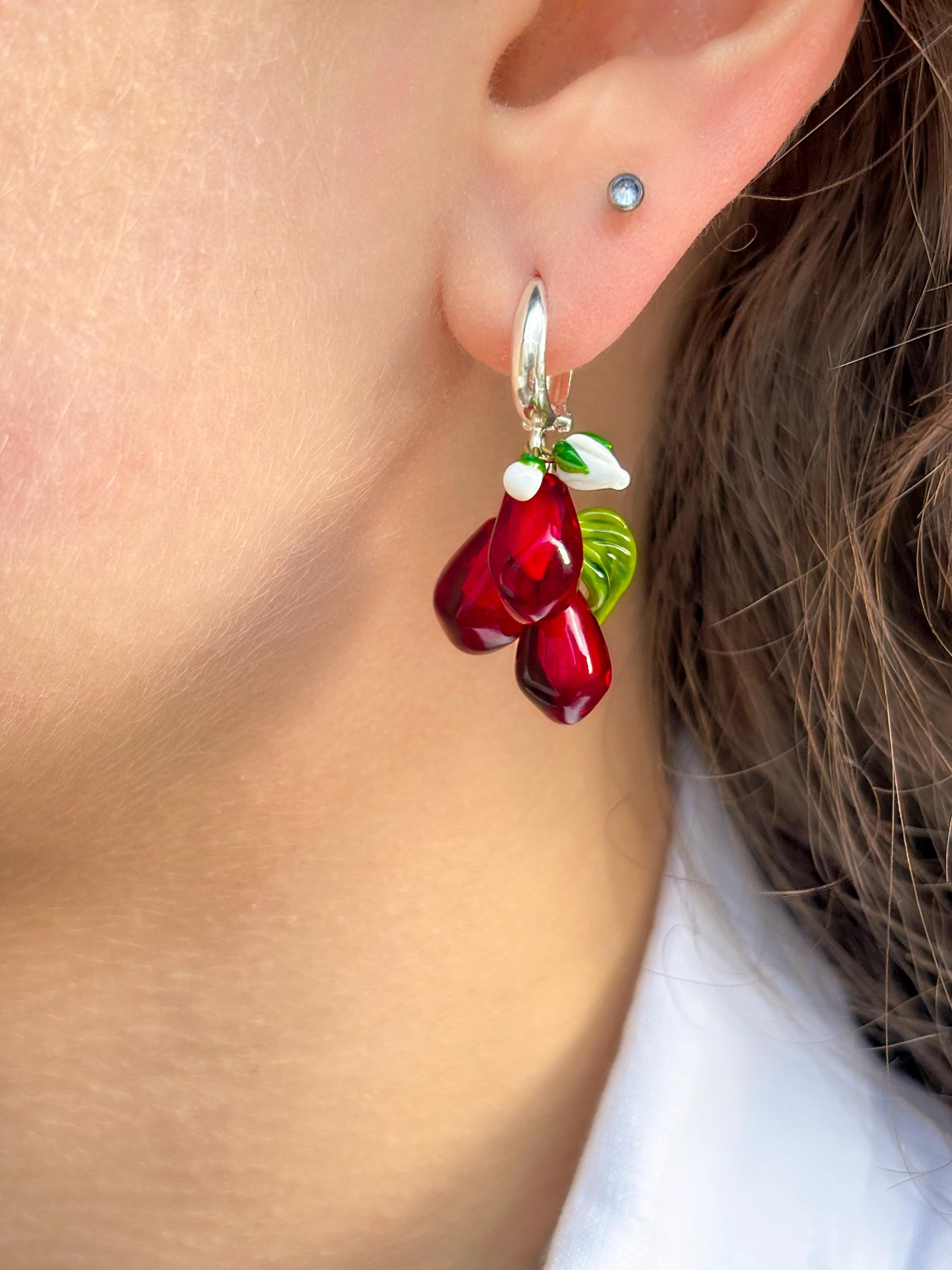 Pomegranate Seed Earrings, Handcrafted, 925 Sterling Silver, Murano Glass, Lampwork