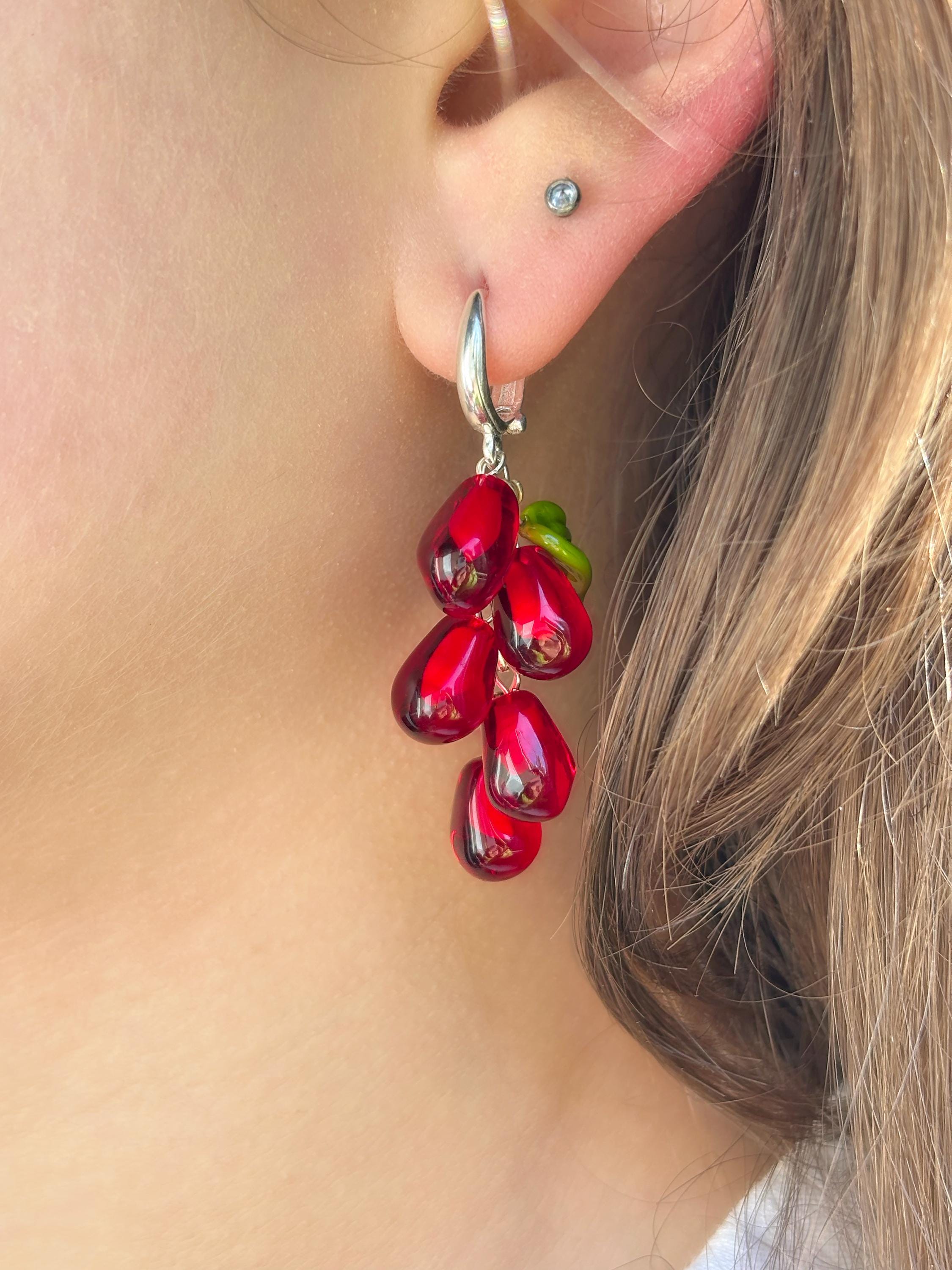 Pomegranate Seed Earrings, Handmade, Fruit Earrings, Murano Glass, 925 Sterling Silver, Lampwork