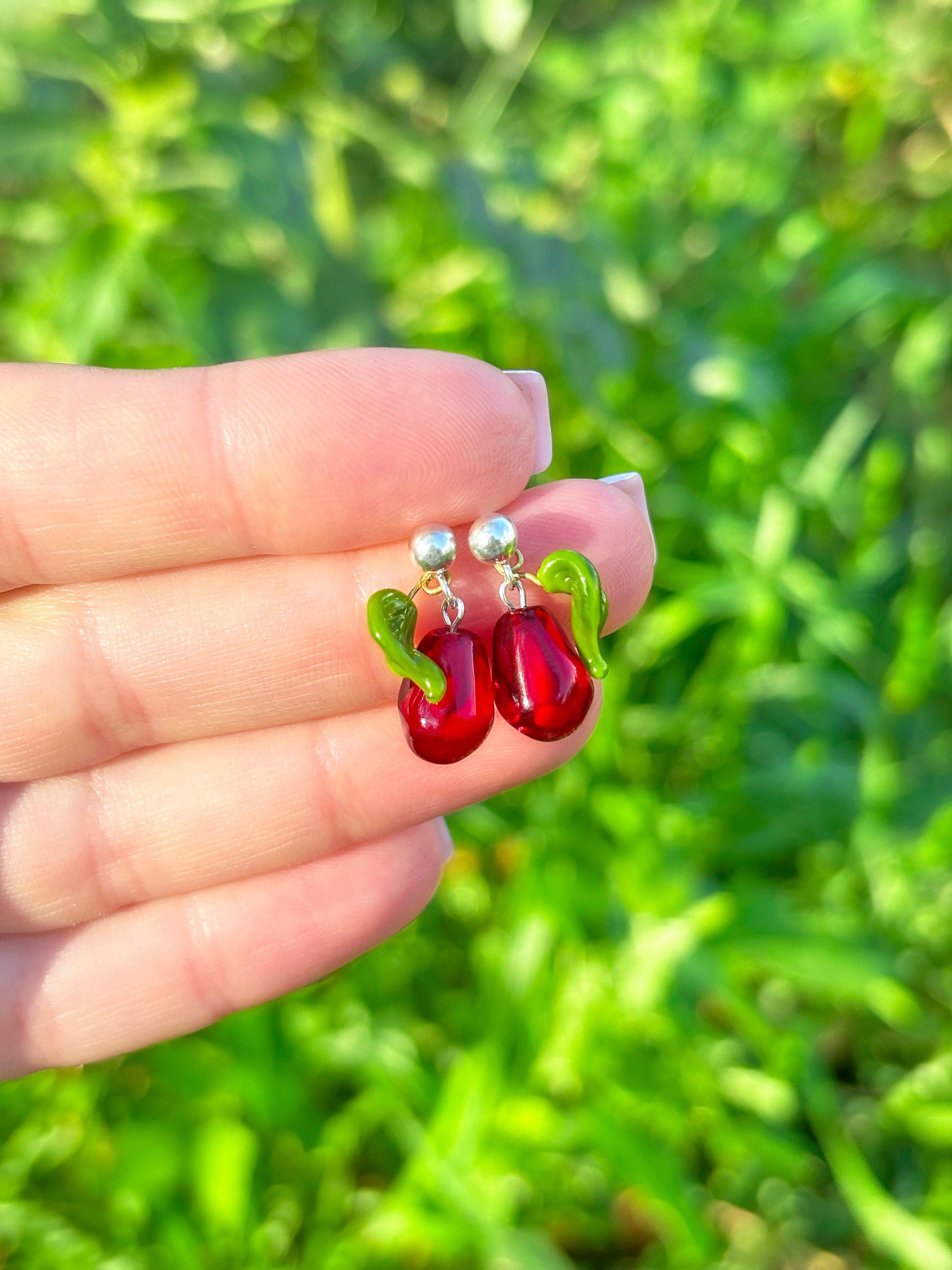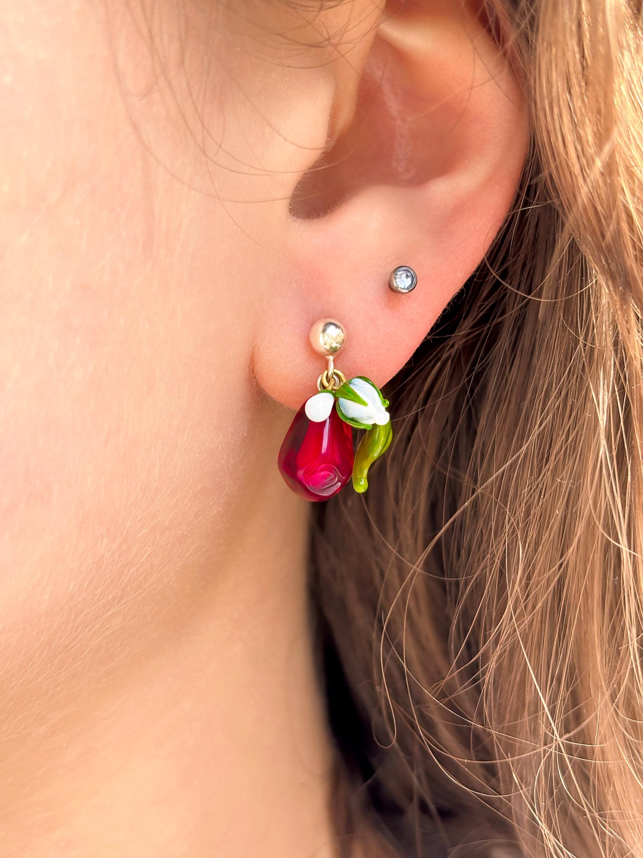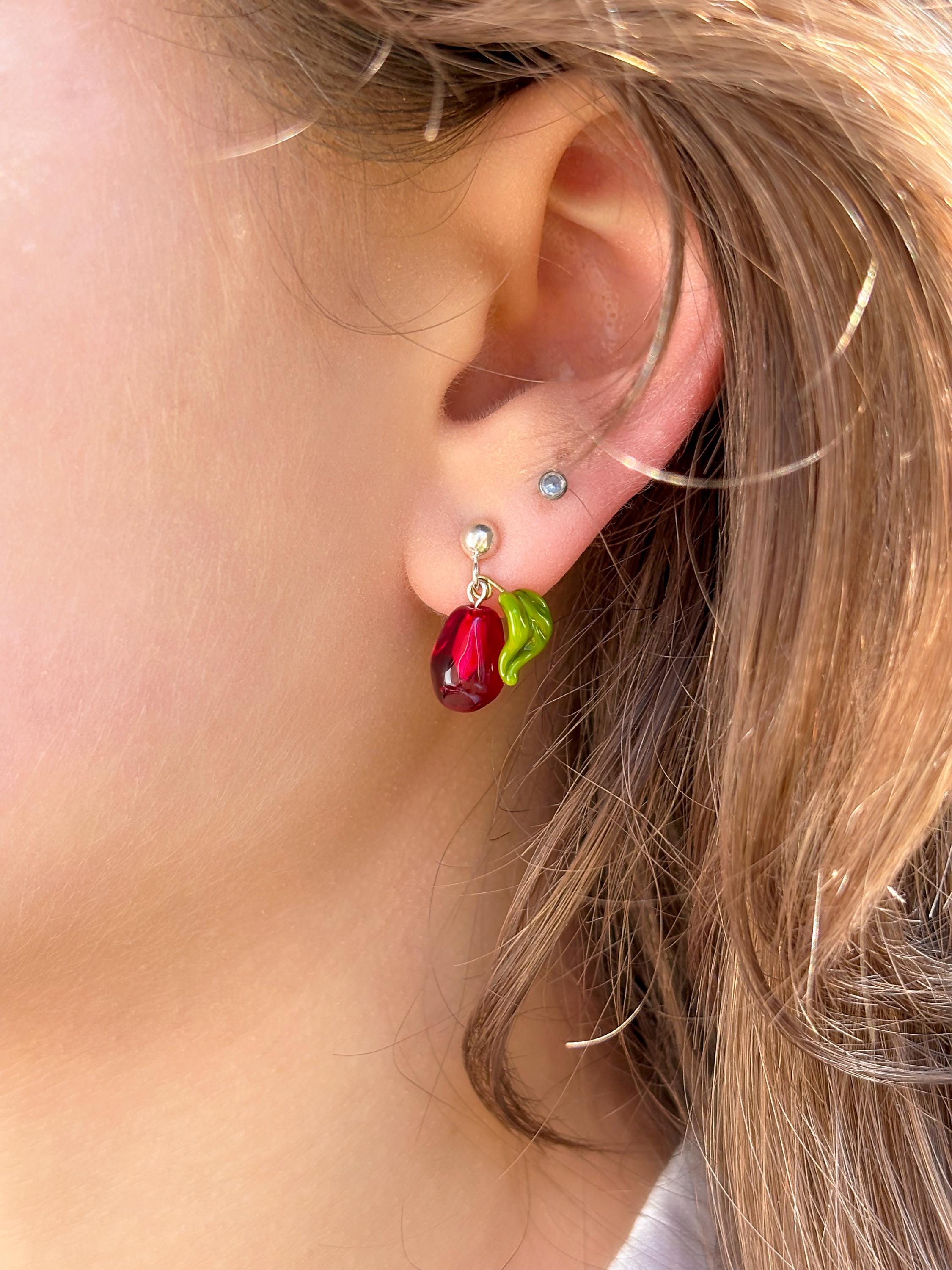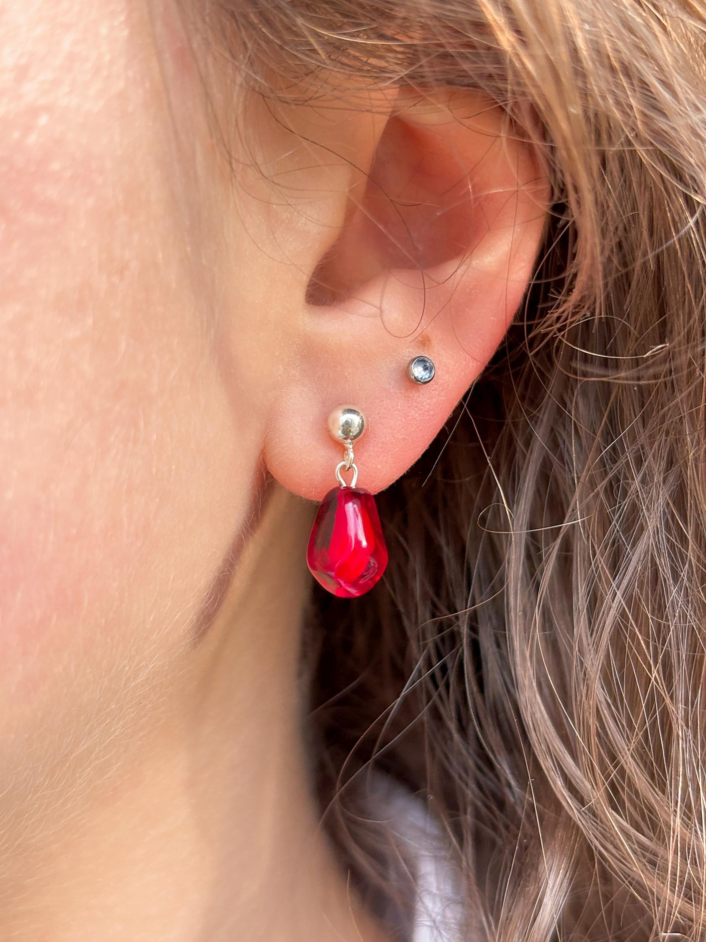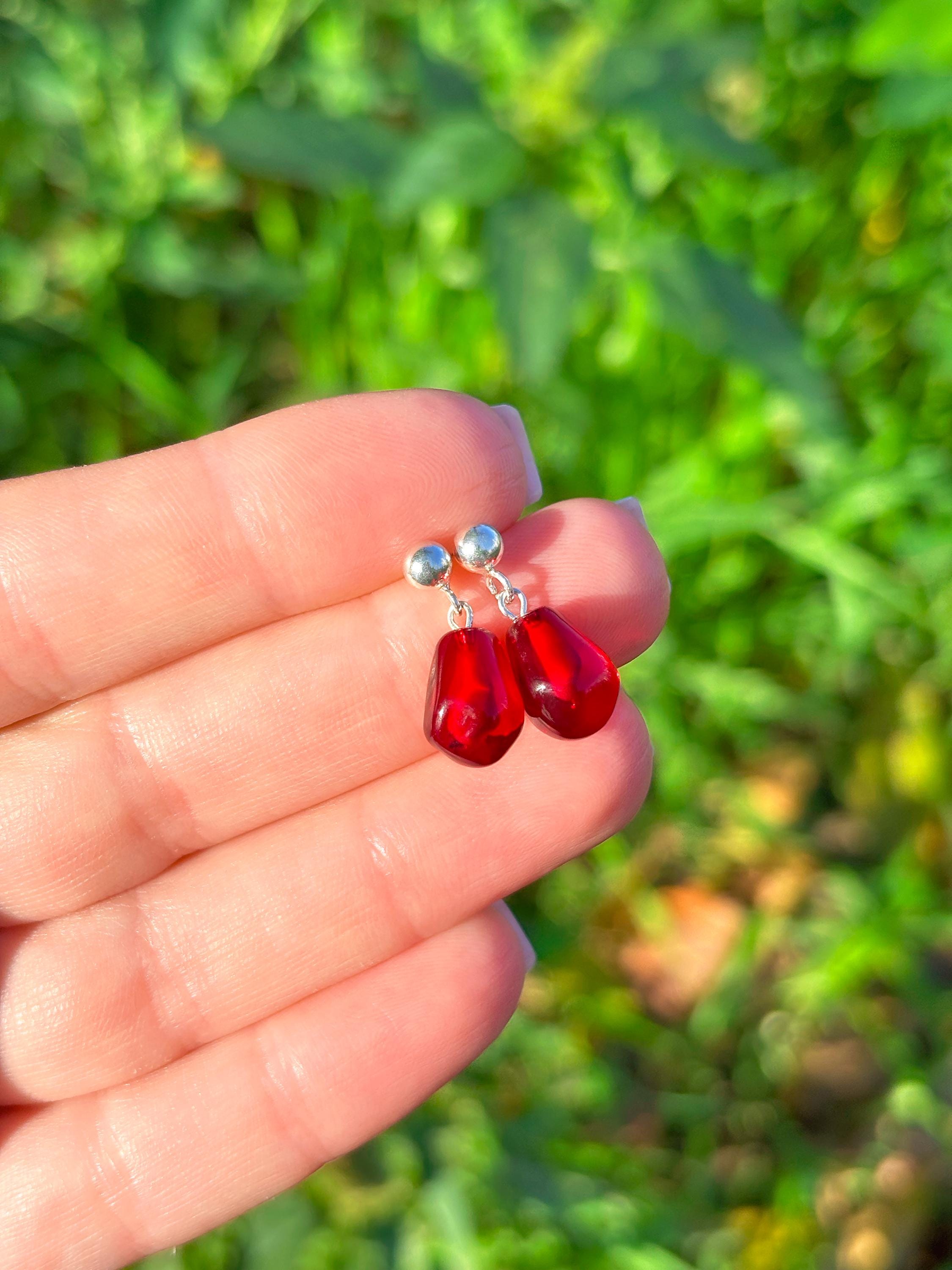 Pomegranate Seed Stud Earrings, Handcrafted, 925 Sterling Silver, Murano Glass, Lampwork