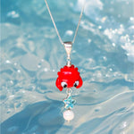 Hanging below the crab is a tiny aqua star set with a sparkling cubic zirconia ✨ and a delicate freshwater pearl, adding a soft ocean shimmer to the design.